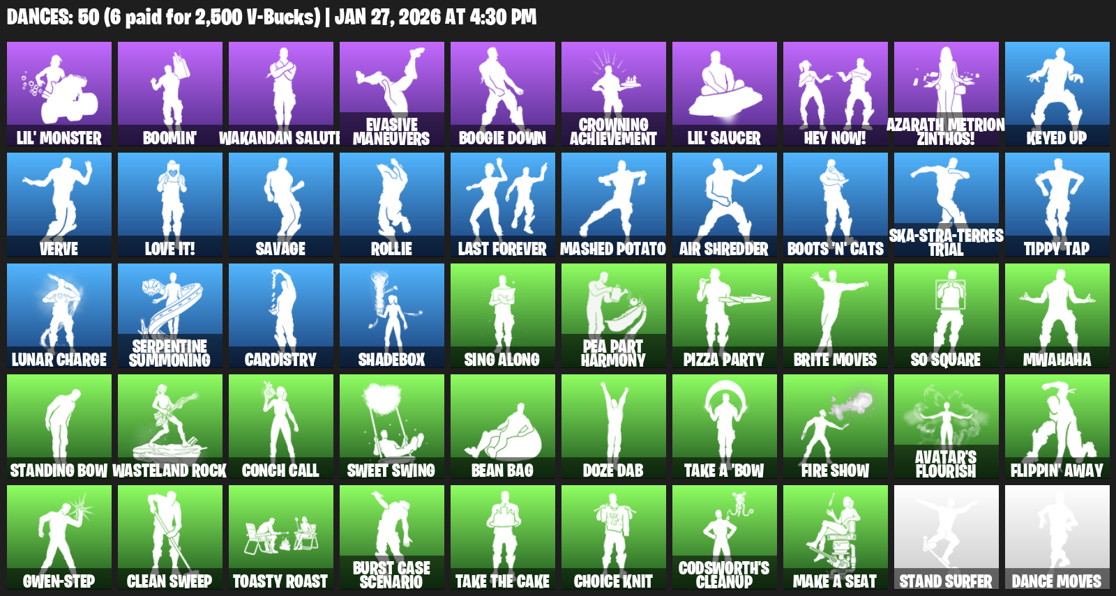 Lil’ Monster, Boomin’, Wakandan Salute, Evasive Maneuvers, Boogie Down, Crowning Achievement, Hey Now!, Azarath Metrion Zinthos!, Keyed Up, Verve, Love it!, Savage, Rollie, Last Forever, Mashed Potato, Air Shredder, Boots ‘n’ Cats, Ska-stra-terrestrial, Tippy Tap
