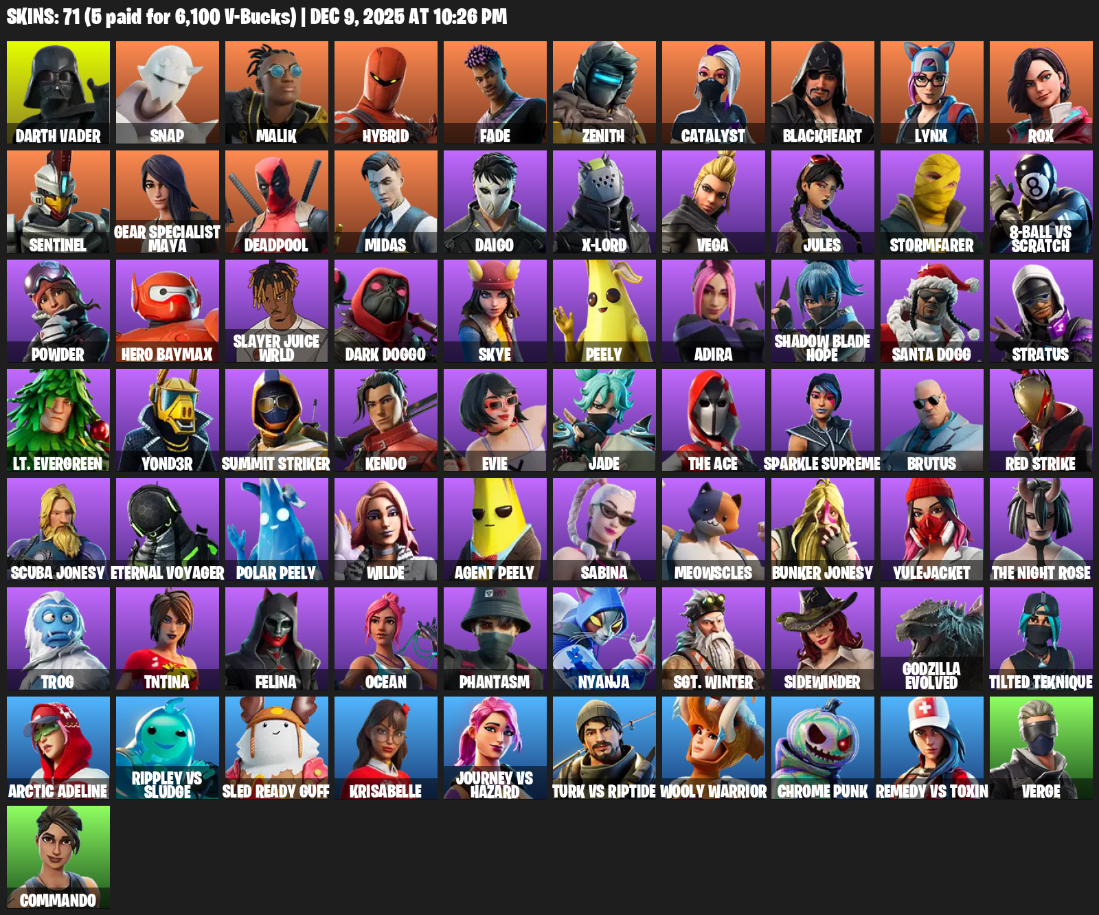 [PC/PSN] | 71 skins | Darth Vader | Snap | Malik | Hybrid | Fade | Zenith | Catalyst | Blackheart | Lynx | Rox | Sentinel | #WWM1429