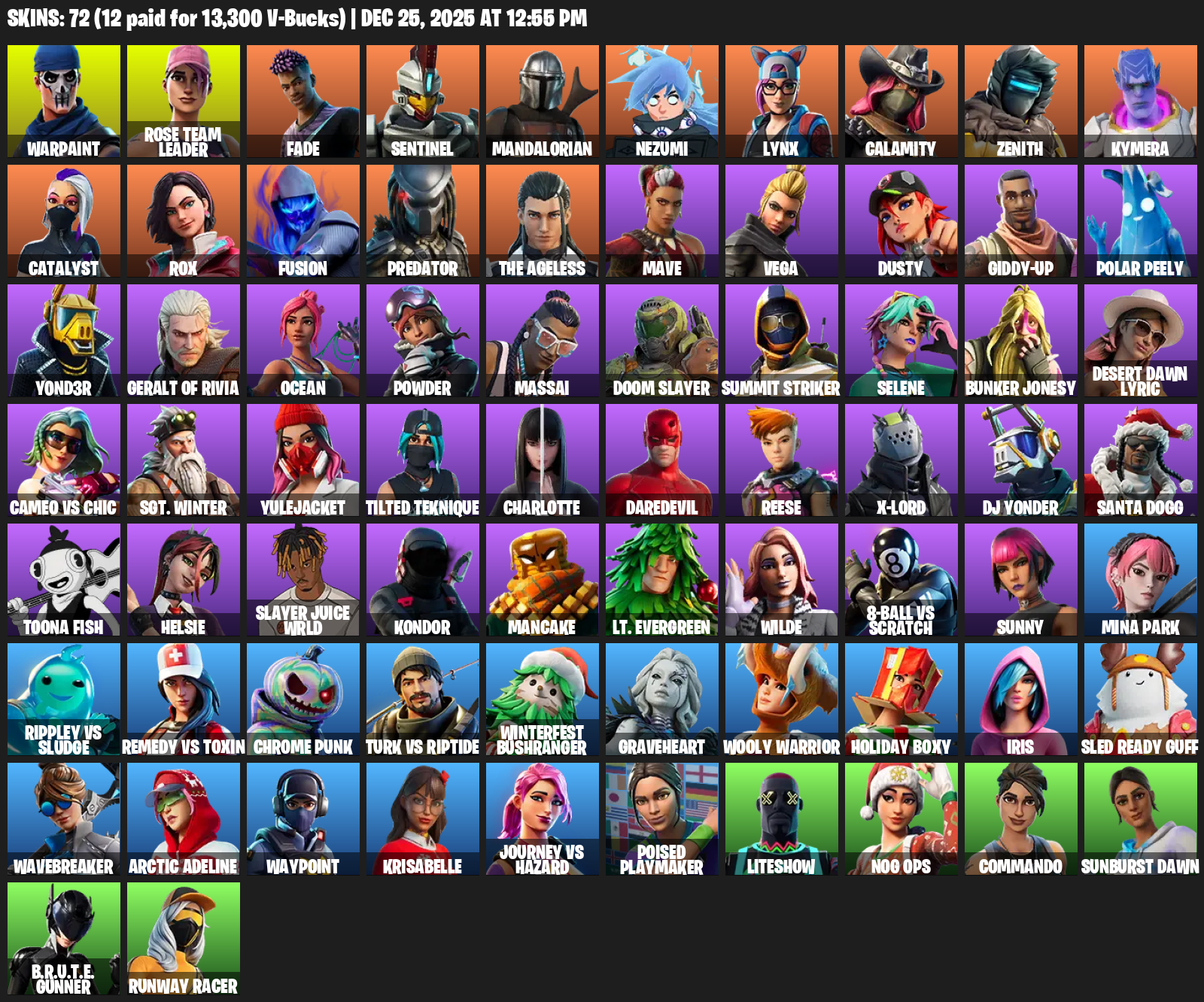 [PC/PSN] | 72 skins | Leviathan Axe | OG STW | Warpaint | Rose Team Leader | Fade | Sentinel | Mandalorian | Nezumi | Lynx | Calamity | #OEA3186