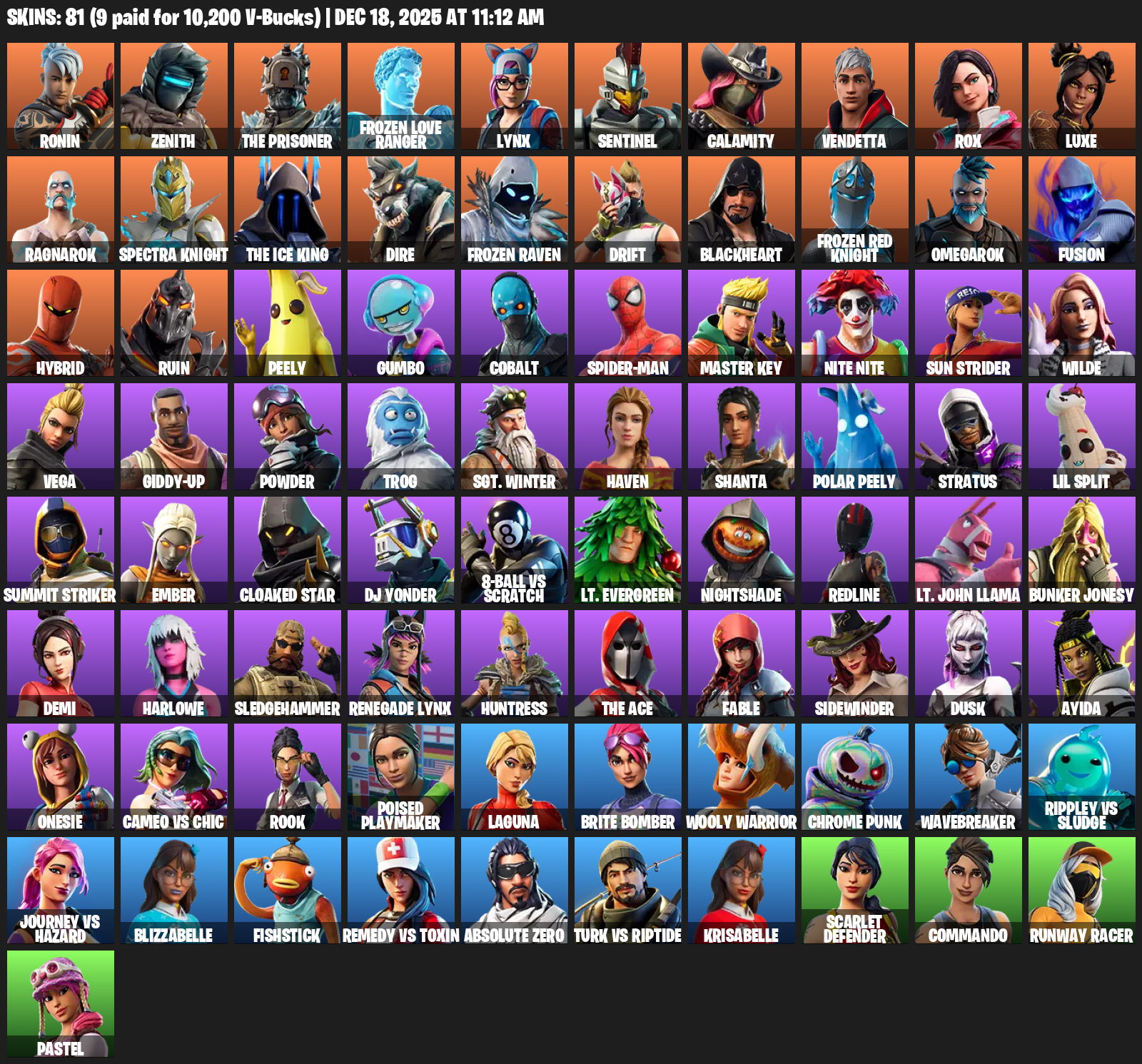 Ronin, Zenith, The Prisoner, Frozen Love Ranger, Lynx, Sentinel, Calamity, Vendetta, Rox, Luxe, Ragnarok, Spectra Knight, Dire, Drift, Blackheart, Omegarok, Fusion