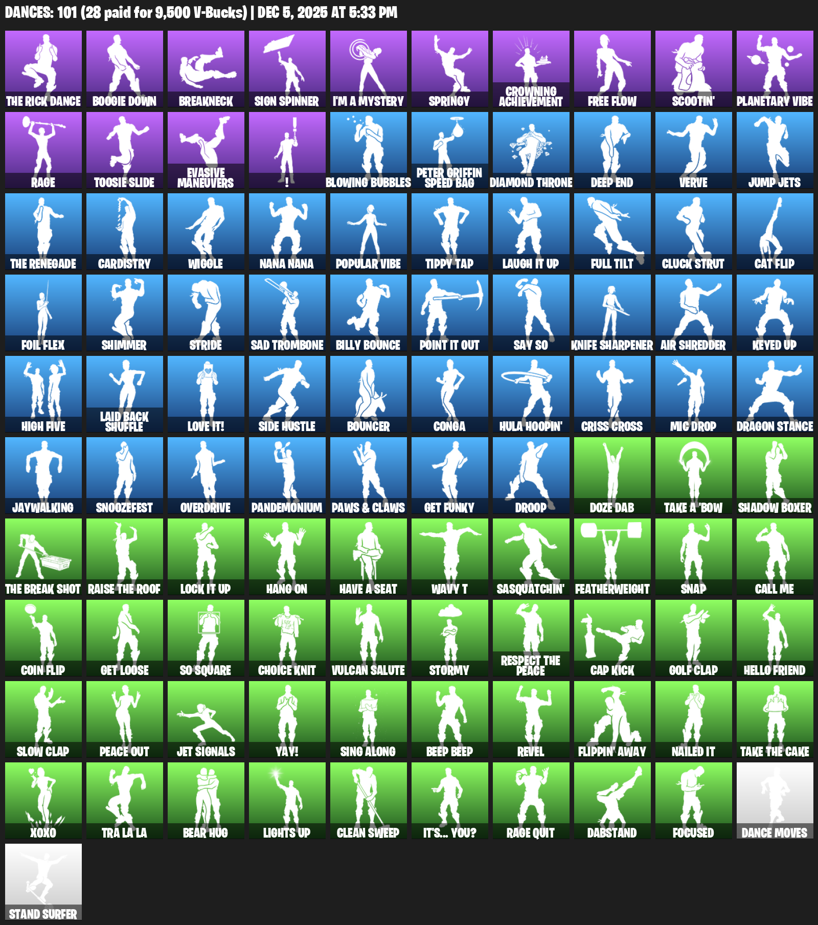Boogie Down, Breakneck, Sign Spinner, I’m a Mystery, Springy, Crowning Achievement, Free Flow, Scootin’, Planetary Vibe, Rage, Toosie Slide, Evasive Maneuvers, !, Blowing Bubbles, Diamond Throne, Deep End, Verve, Jump Jets