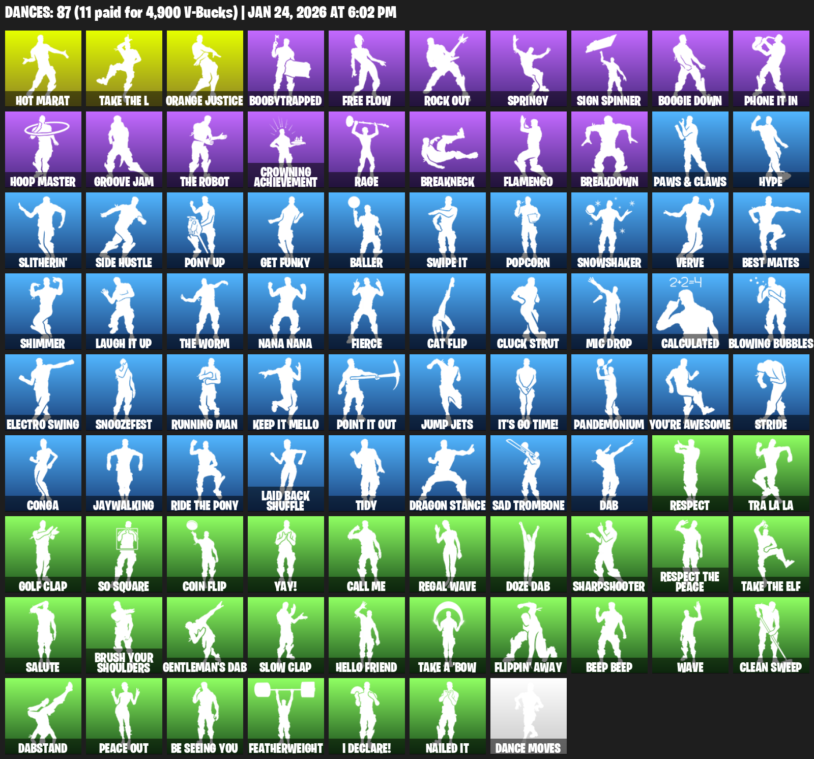 Hot Marat, Orange Justice, Boobytrapped, Free Flow, Rock Out, Springy, Sign Spinner, Boogie Down, Phone It In, Hoop Master, Groove Jam, Crowning Achievement, Rage, Breakneck, Flamenco, Breakdown, Paws & Claws, Hype