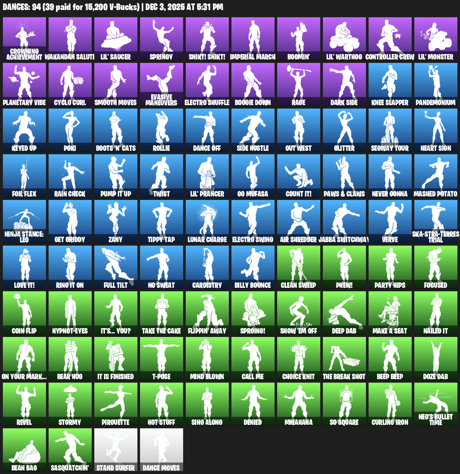 Crowning Achievement, Wakandan Salute, Lil’ Saucer, Springy, Snikt! Snikt!, Imperial March, Boomin’, Controller Crew, Planetary Vibe, Cyclo Curl, Smooth Moves, Evasive Maneuvers, Electro Shuffle, Boogie Down, Rage, Dark Side, Knee Slapper, Pandemonium