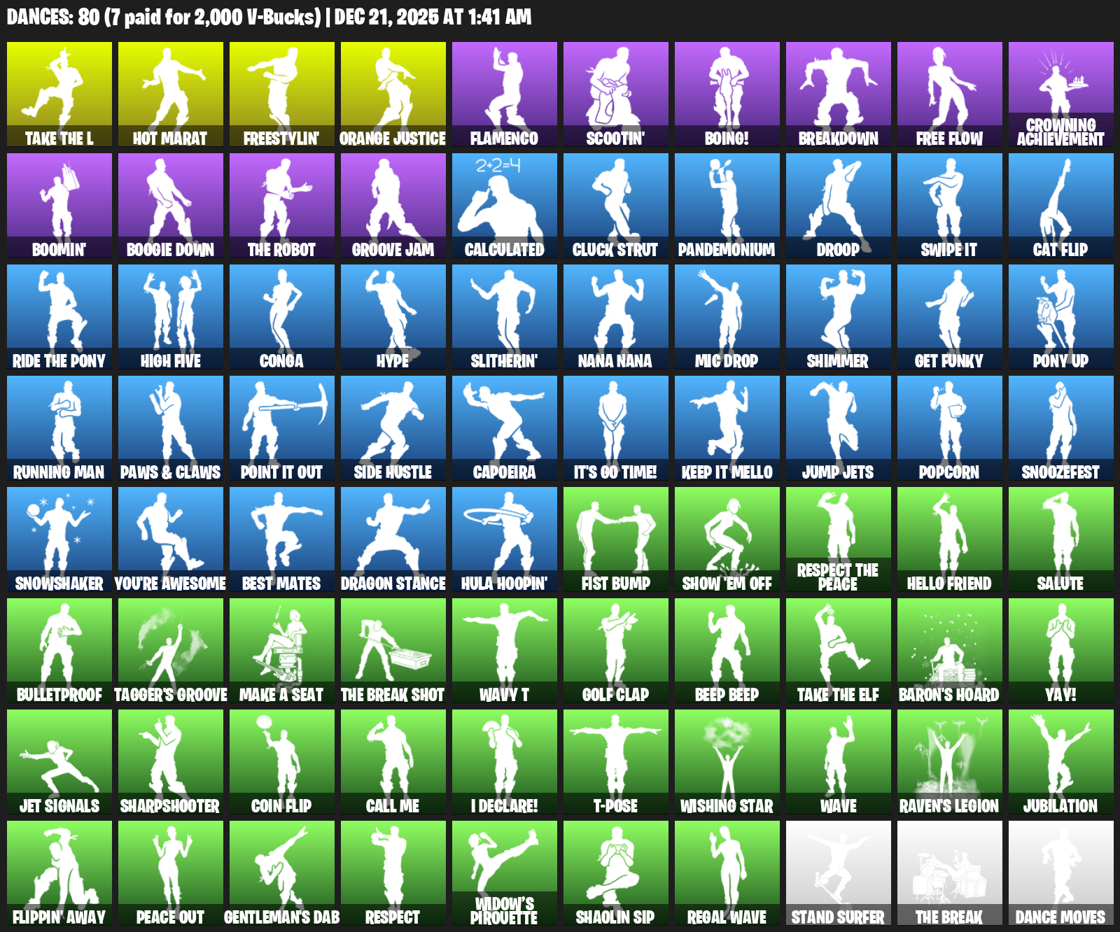 Hot Marat, Freestylin’, Flamenco, Scootin’, Boing!, Breakdown, Free Flow, Crowning Achievement, Boomin’, Boogie Down, Groove Jam, Calculated, Cluck Strut, Pandemonium, Droop, Swipe It, Cat Flip