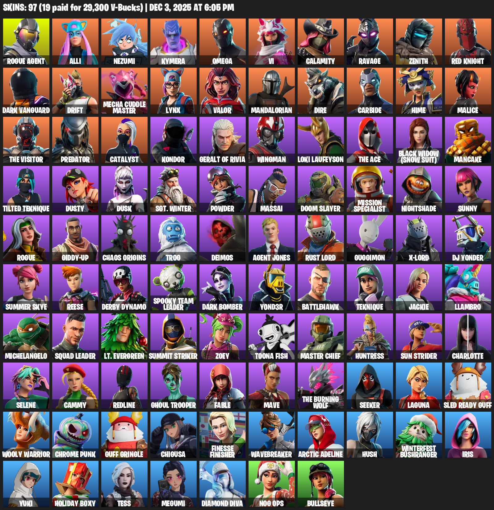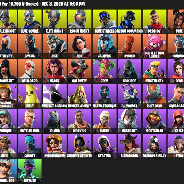 Omega, Rogue Agent, Alli, Nezumi, Kymera, Vi, Calamity, Ravage, Zenith, Red Knight, Dark Vanguard, Drift, Mecha Cuddle Master, Lynx, Valor, Mandalorian, Dire, Carbide, Hime, Malice