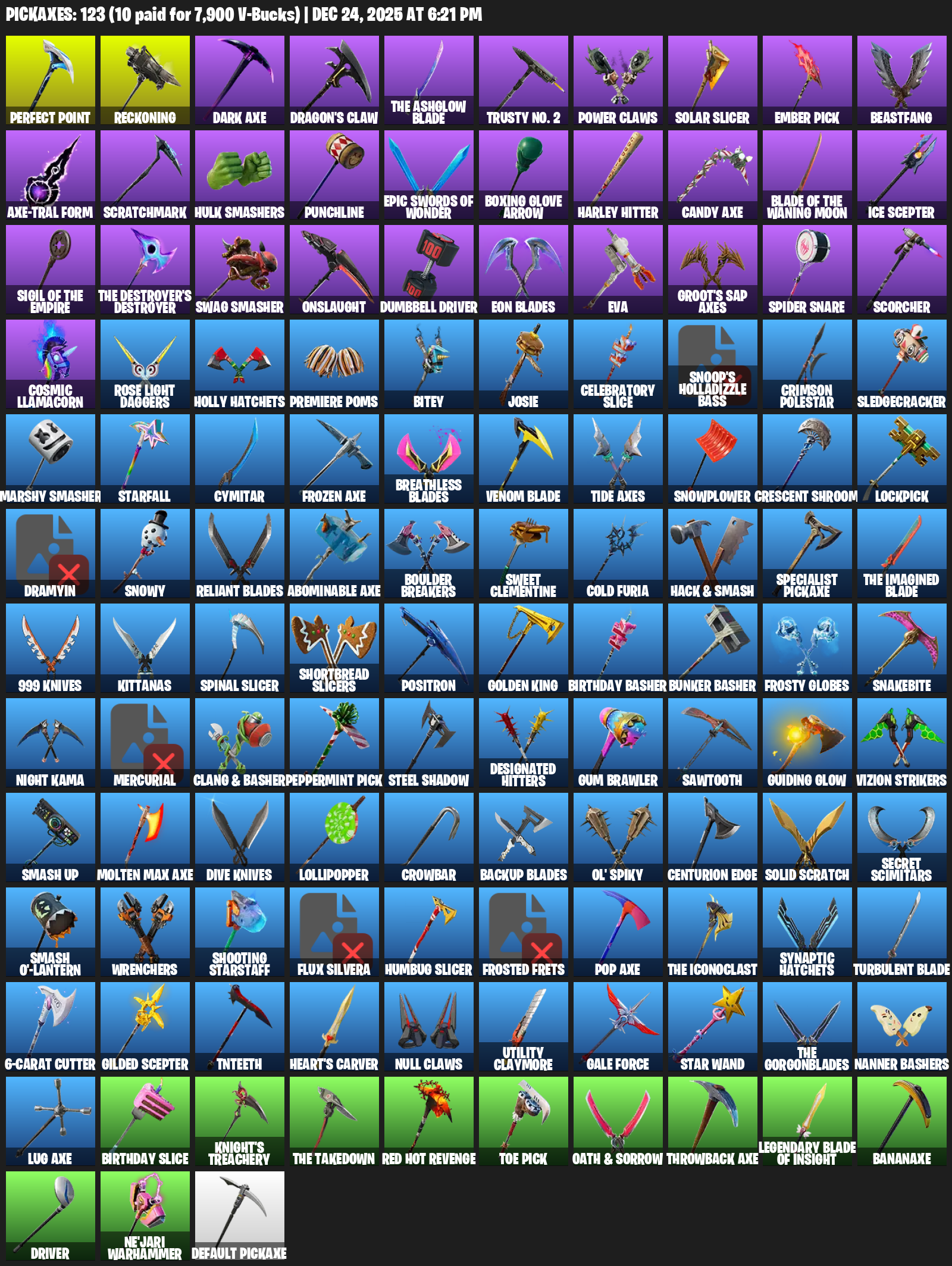 Perfect Point, Reckoning, Dragon’s Claw, Trusty No. 2, Power Claws, Solar Slicer, Ember Pick, Beastfang, Axe-tral Form, Scratchmark, Hulk Smashers, Punchline, Boxing Glove Arrow, Harley Hitter, Ice Scepter