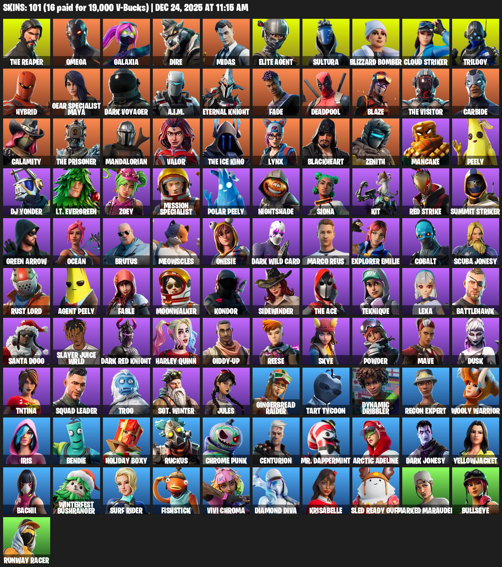 The Reaper, Omega, Elite Agent, Gear Specialist Maya, Galaxia, Dire, Midas, Sultura, Blizzard Bomber, Cloud Striker, Trilogy, Hybrid, Dark Voyager, A.I.M., Eternal Knight, Fade, Deadpool, Blaze, Carbide