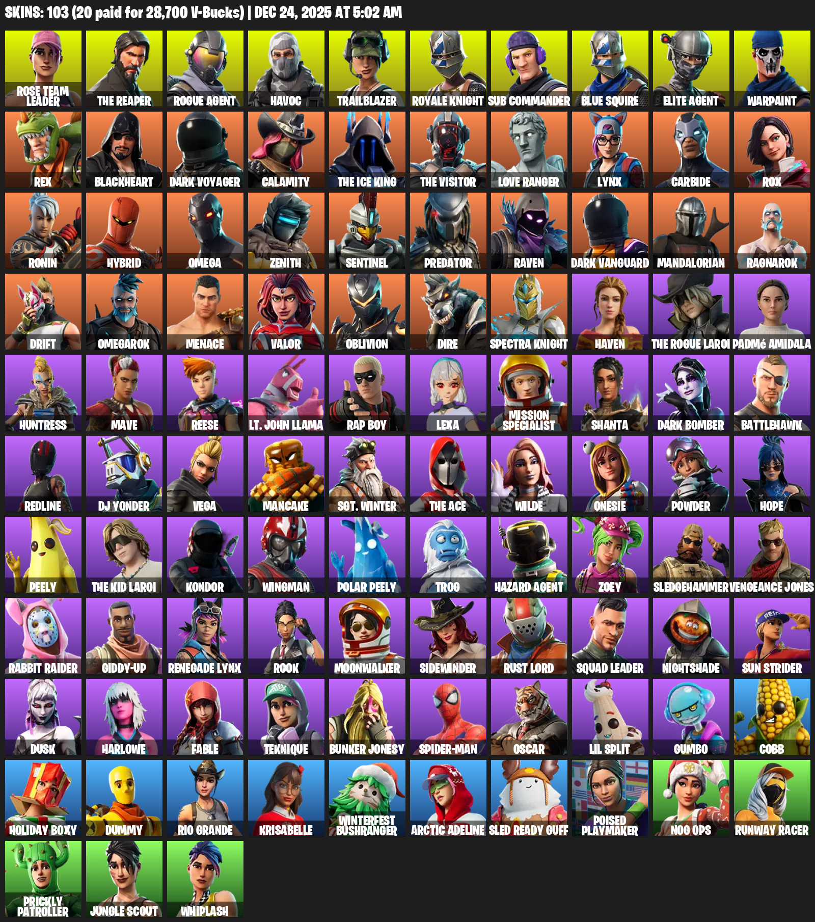 [PC/PSN/XBOX] | 103 skins | Take The L | OG STW | Royale Knight | The Reaper | Elite Agent | Blue Squire | Omega | Rose Team Leader | #DSN8520