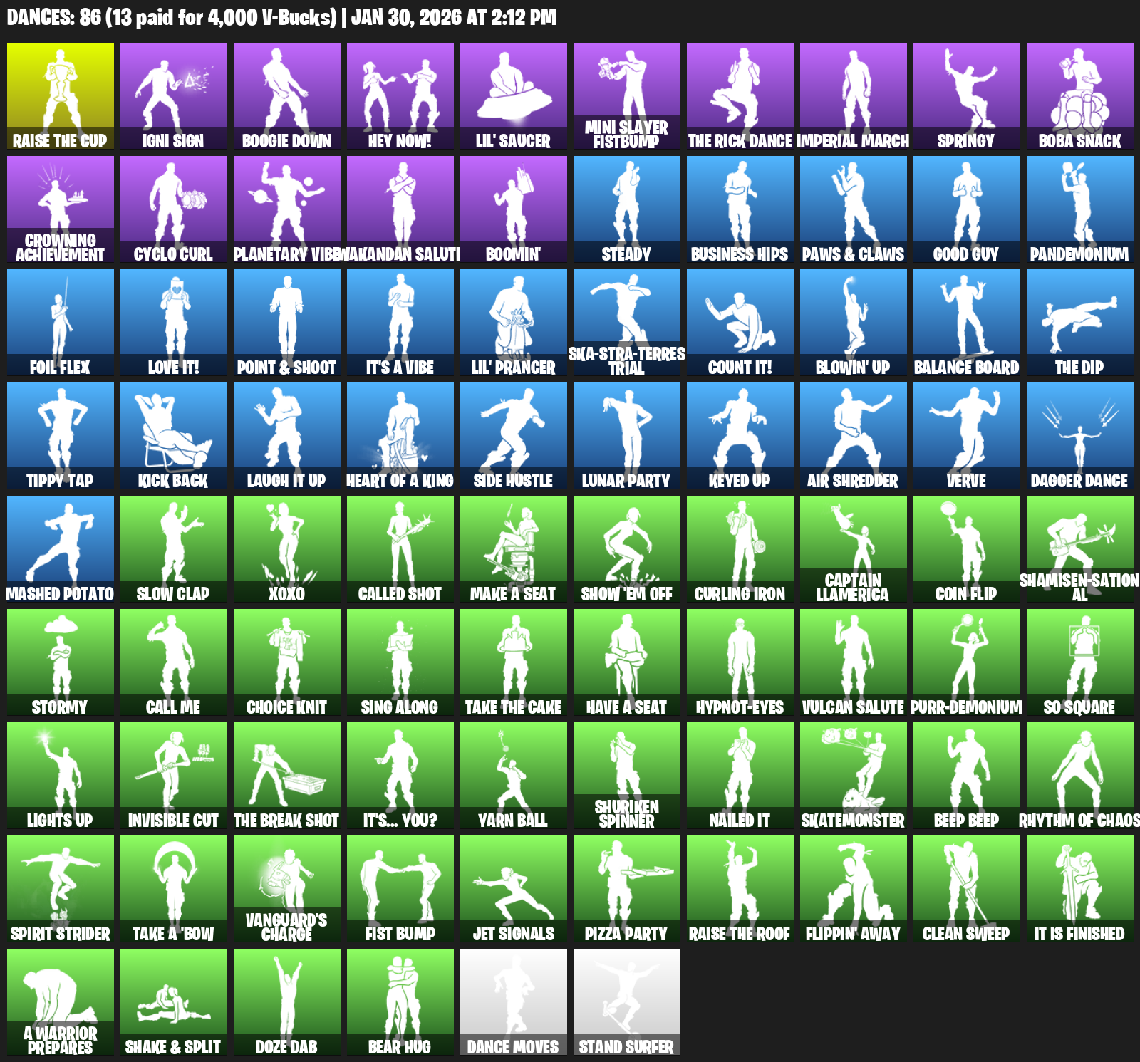 Igni Sign, Boogie Down, Hey Now!, Lil’ Saucer, Imperial March, Springy, Boba Snack, Crowning Achievement, Cyclo Curl, Planetary Vibe, Wakandan Salute, Boomin’, Steady, Business Hips, Paws & Claws, Good Guy, Pandemonium