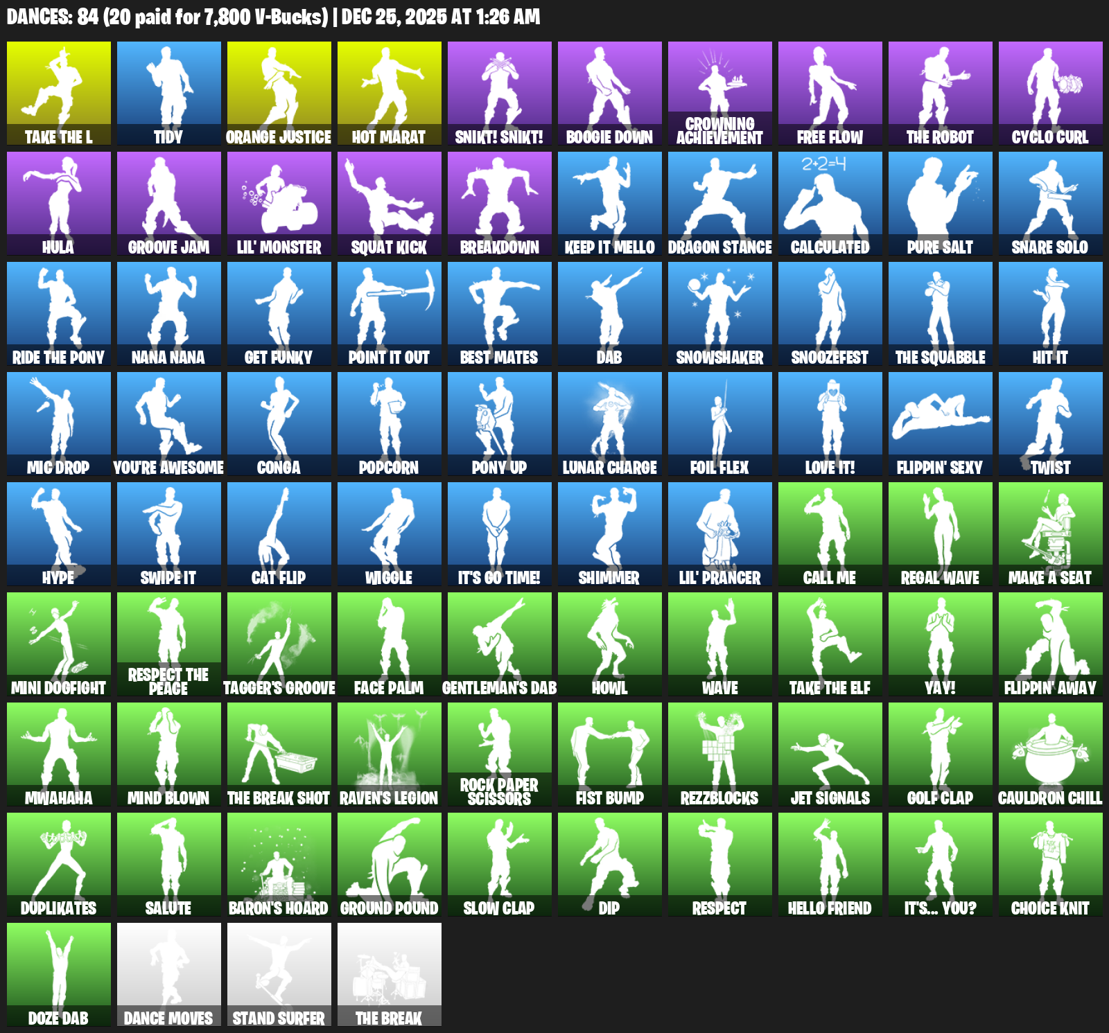 Hot Marat, Tidy, Orange Justice, Snikt! Snikt!, Boogie Down, Crowning Achievement, Free Flow, Cyclo Curl, Hula, Groove Jam, Lil’ Monster, Squat Kick, Breakdown, Keep It Mello, Dragon Stance, Calculated, Pure Salt