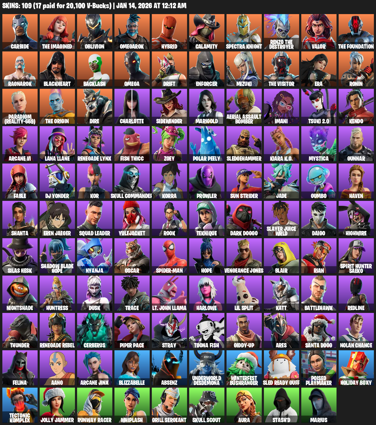 [PC/PSN/XBOX] | 109 skins | Omega | Reaper Axe | Carbide | The Imagined | Oblivion | Omegarok | Hybrid | Calamity | Spectra Knight | #AYI5158