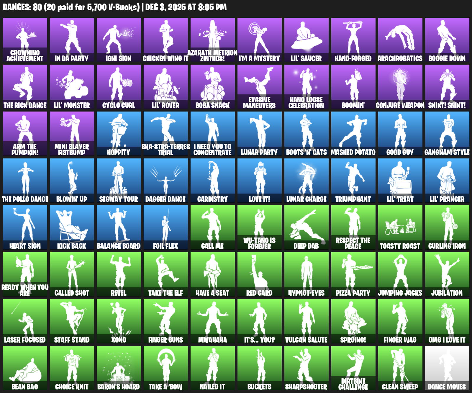 Crowning Achievement, In Da Party, Igni Sign, Chicken Wing It, Azarath Metrion Zinthos!, I’m a Mystery, Lil’ Saucer, Hand-Forged, Arachrobatics, Boogie Down, Cyclo Curl, Boba Snack, Evasive Maneuvers, Hang Loose Celebration, Boomin’, Conjure Weapon, Snikt! Snikt!
