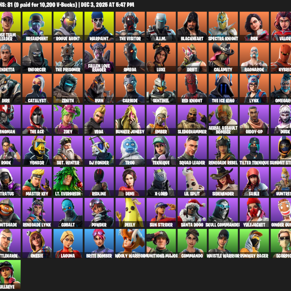Gear Specialist Maya, Lara Croft, Joey, Kado Thorne, Valeria, Fusion, Deadpool, Ronin, The Cube Queen, Omegarok, Peter Griffin, Fade, Torin, Blaze, Raz, Kymera, Spire Assassin, Spectra Knight, Paradigm (Reality-659)