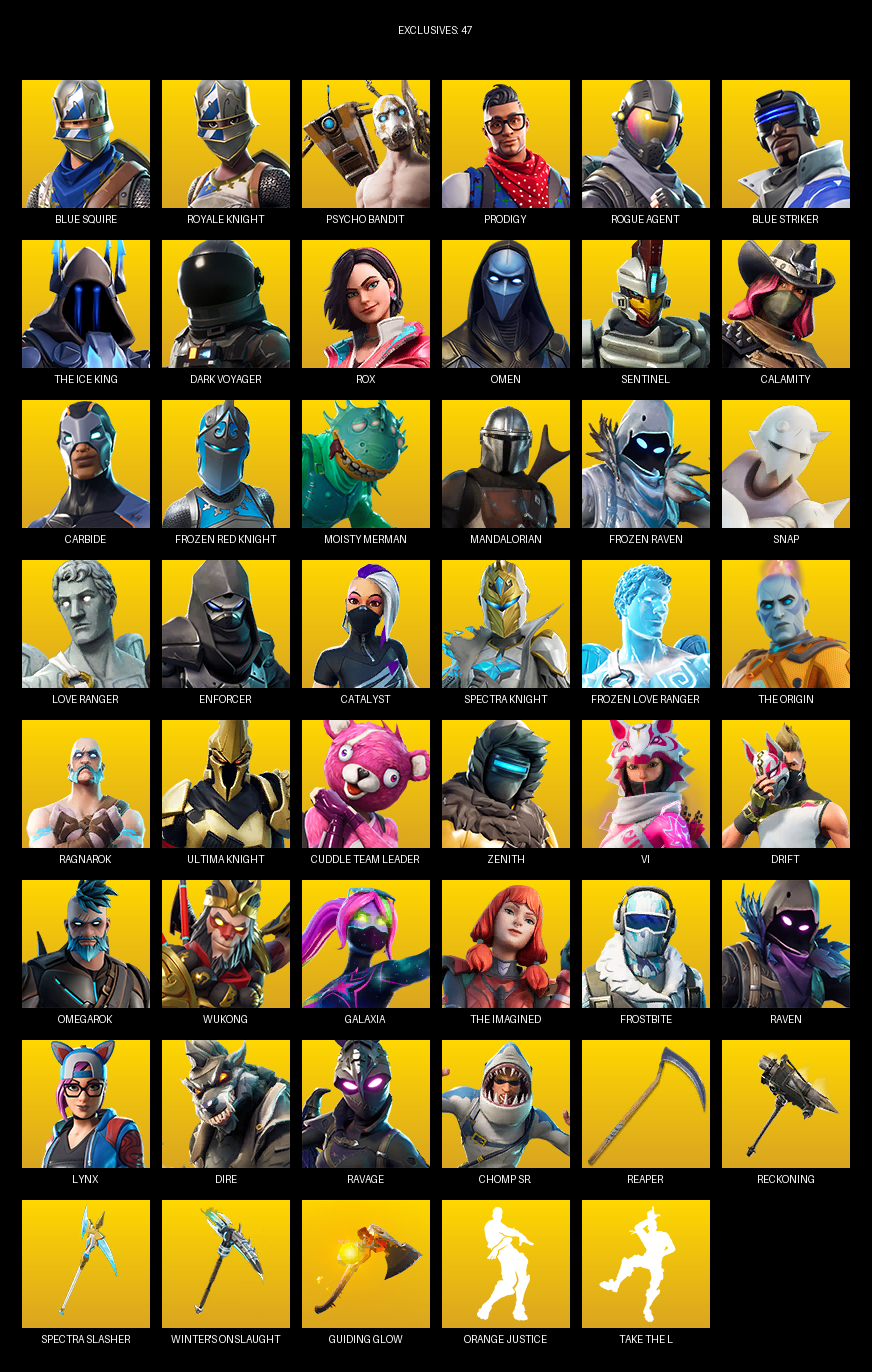 [PC/PSN/XBOX] | 113 skins | Take The L | Royale Knight | Blue Squire | Psycho Bandit | Prodigy | Rogue Agent | Blue Striker | The Ice King | #LIR4321