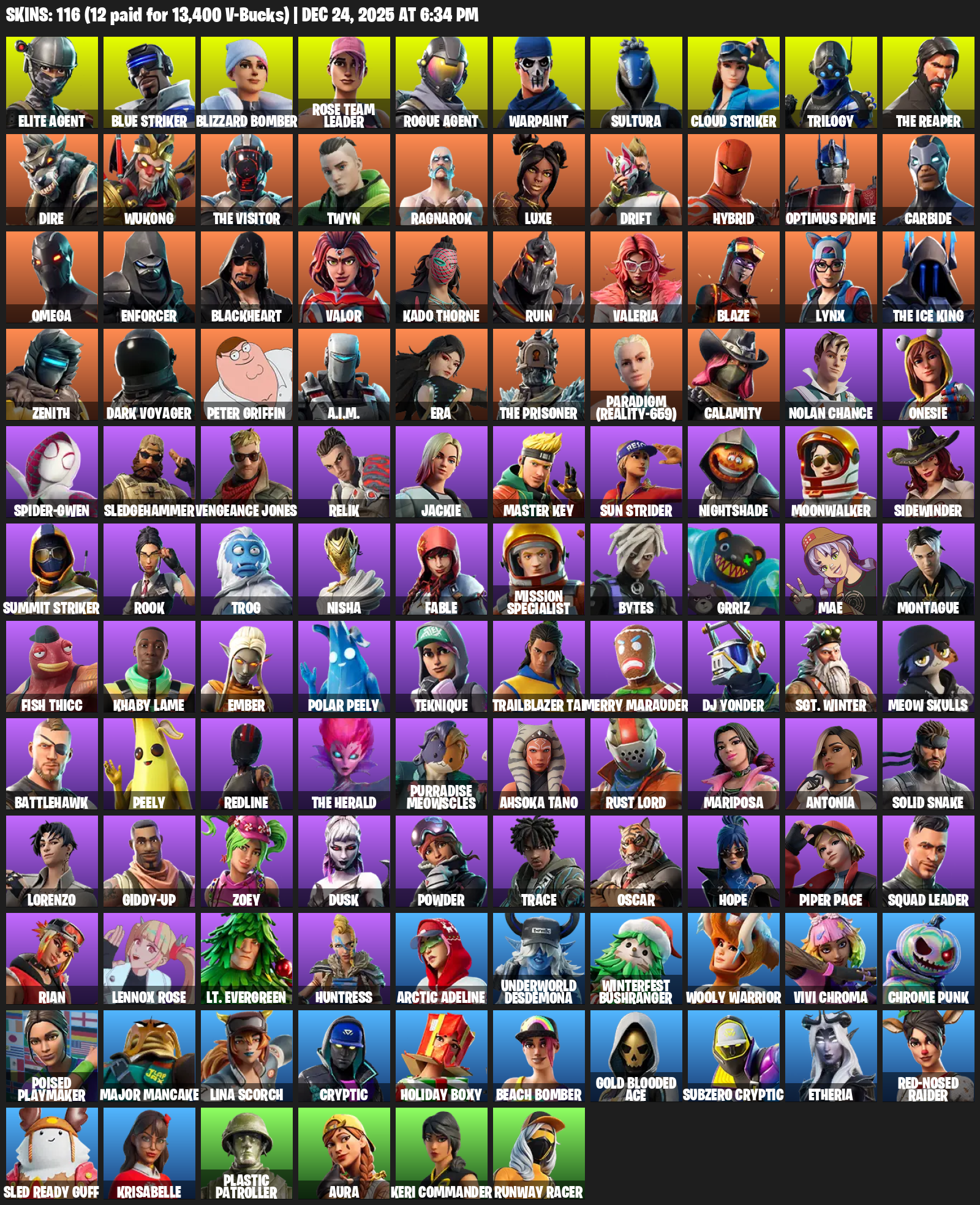 [PC/PSN/XBOX] | 116 skins | Take The L | OG STW | The Reaper | Elite Agent | Omega | Blue Striker | Blizzard Bomber | Rose Team Leader | #FHH1892