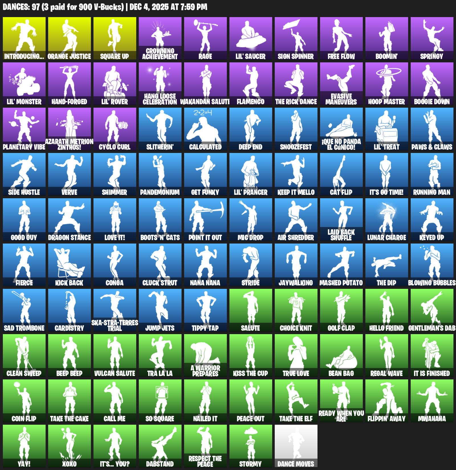 Introducing…, Square Up, Crowning Achievement, Rage, Lil’ Saucer, Sign Spinner, Free Flow, Boomin’, Springy, Hand-Forged, Hang Loose Celebration, Wakandan Salute, Flamenco, Evasive Maneuvers, Hoop Master, Boogie Down