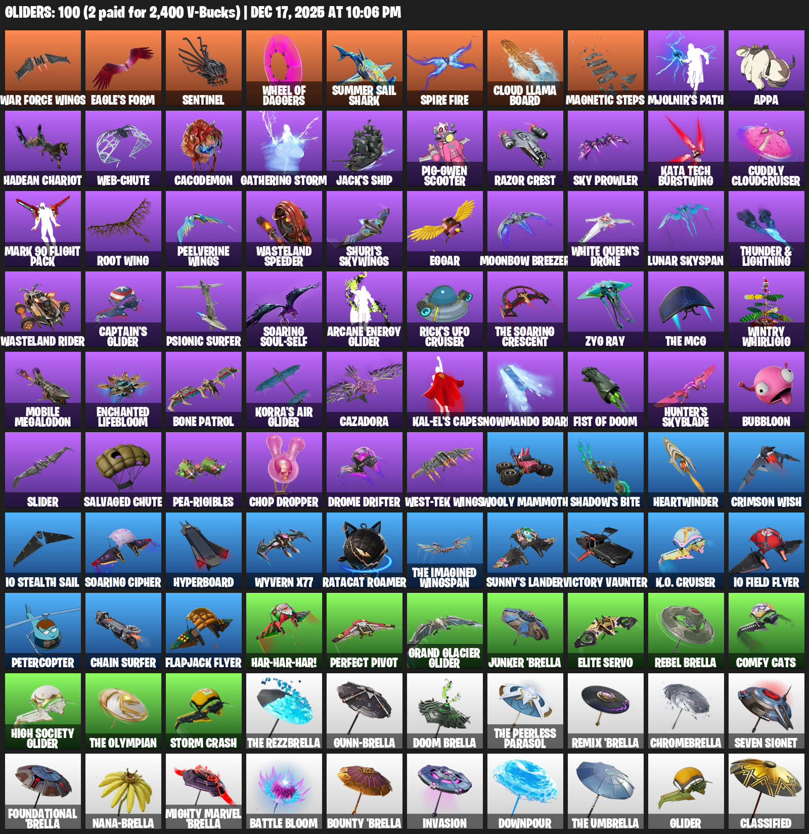 War Force Wings, Eagle’s Form, Sentinel, Summer Sail Shark, Cloud Llama Board, Magnetic Steps, Mjolnir’s Path, Appa, Web-Chute, Cacodemon, Gathering Storm, Jack’s Ship, Pig-Gwen Scooter, Razor Crest, Sky Prowler, Cuddly Cloudcruiser