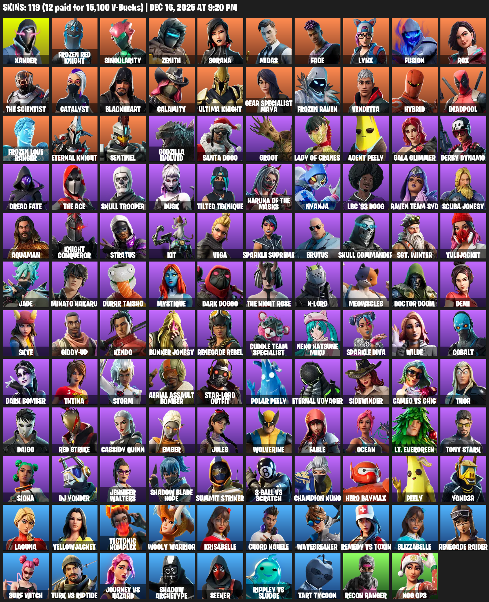 Gear Specialist Maya, Renegade Raider, Xander, Frozen Red Knight, Singularity, Zenith, Sorana, Midas, Fade, Lynx, Fusion, Rox, The Scientist, Catalyst, Blackheart, Calamity, Vendetta, Hybrid