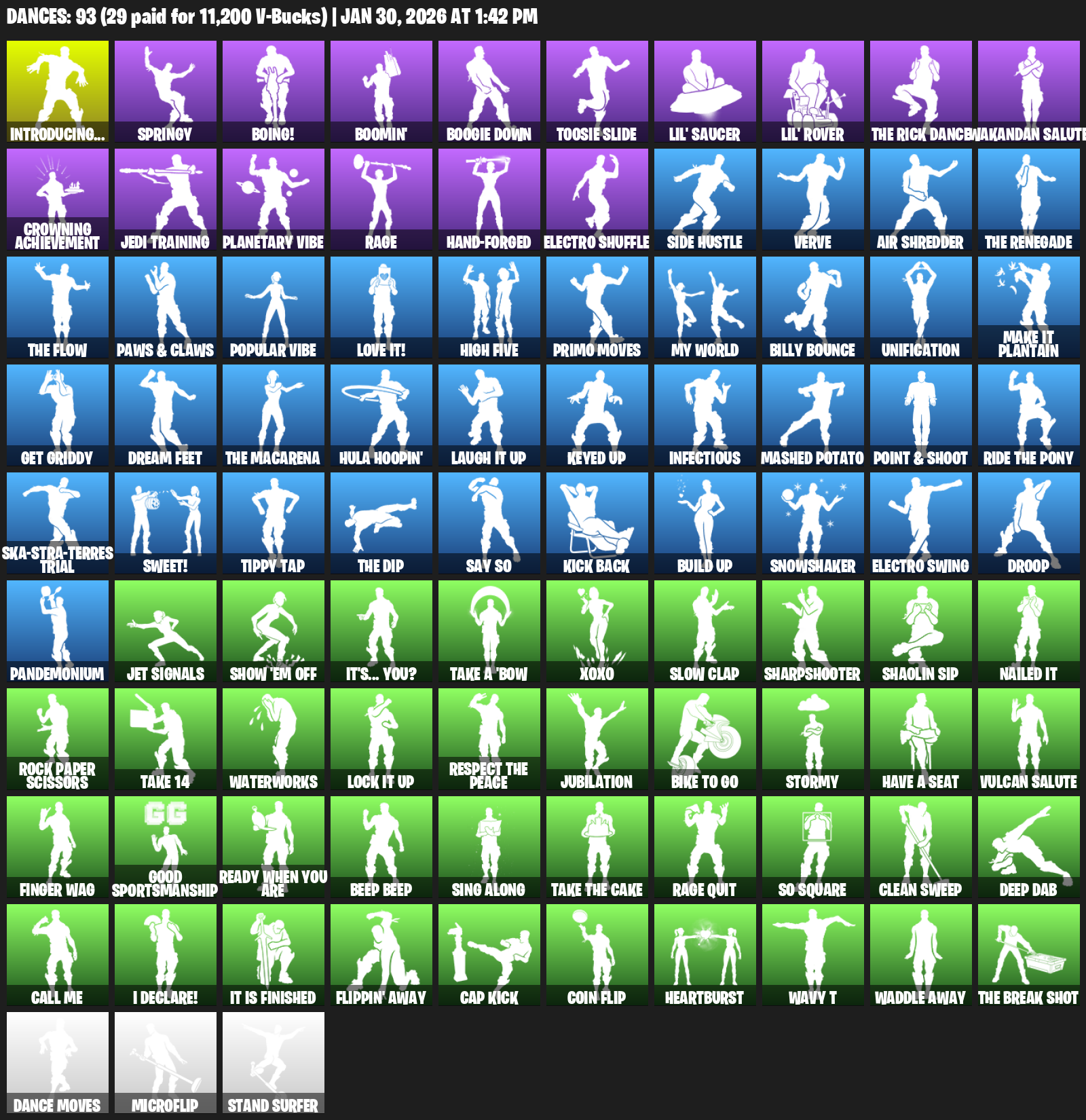 Introducing…, Springy, Boing!, Boomin’, Boogie Down, Toosie Slide, Lil’ Saucer, Wakandan Salute, Crowning Achievement, Jedi Training, Planetary Vibe, Rage, Hand-Forged, Electro Shuffle, Side Hustle, Verve, Air Shredder