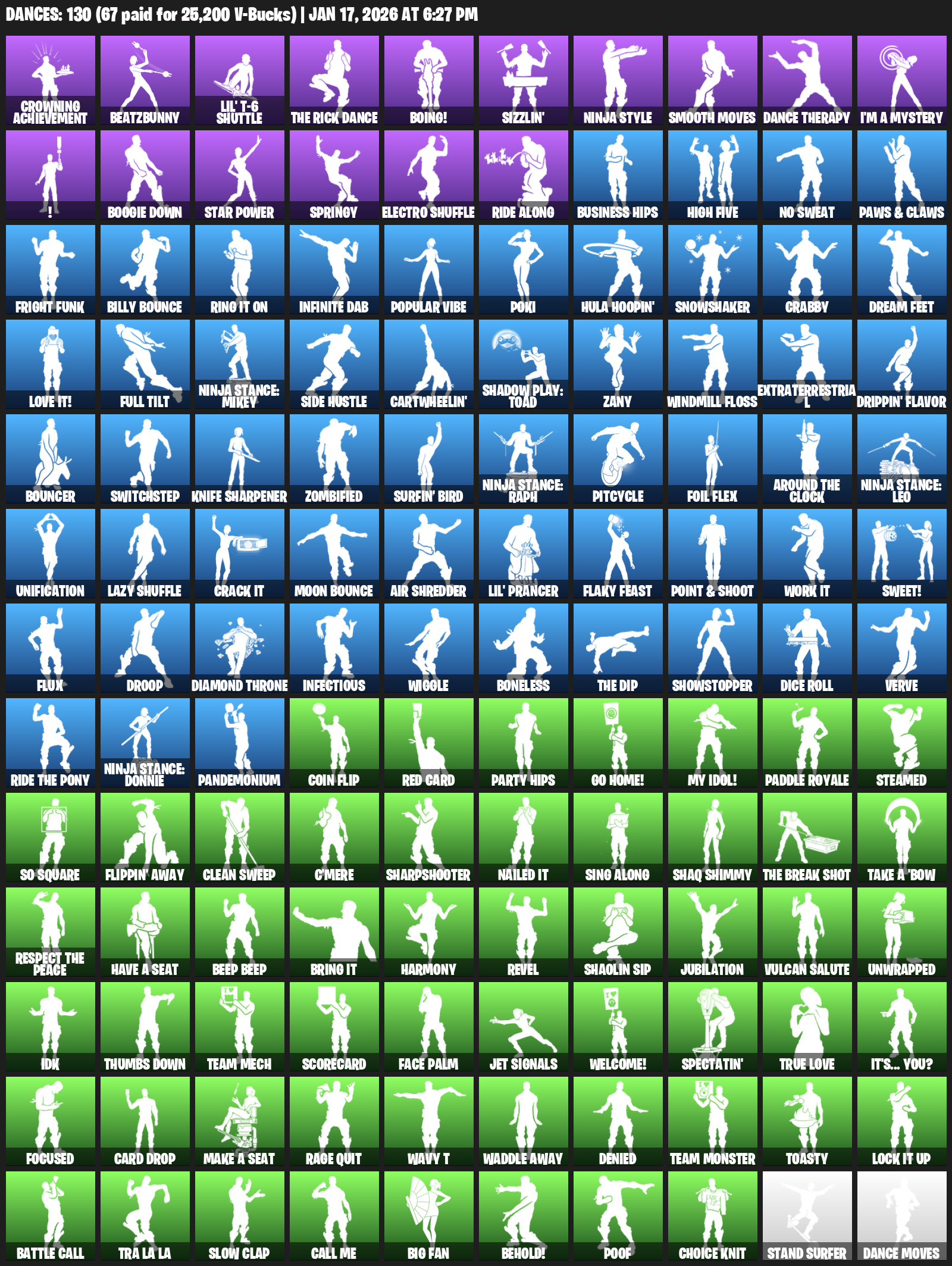 Crowning Achievement, BeatzBunny, Lil’ T-6 Shuttle, Boing!, Sizzlin’, Ninja Style, Smooth Moves, Dance Therapy, I’m a Mystery, !, Boogie Down, Star Power, Springy, Electro Shuffle, Ride Along, Business Hips, High Five, No Sweat, Paws & Claws