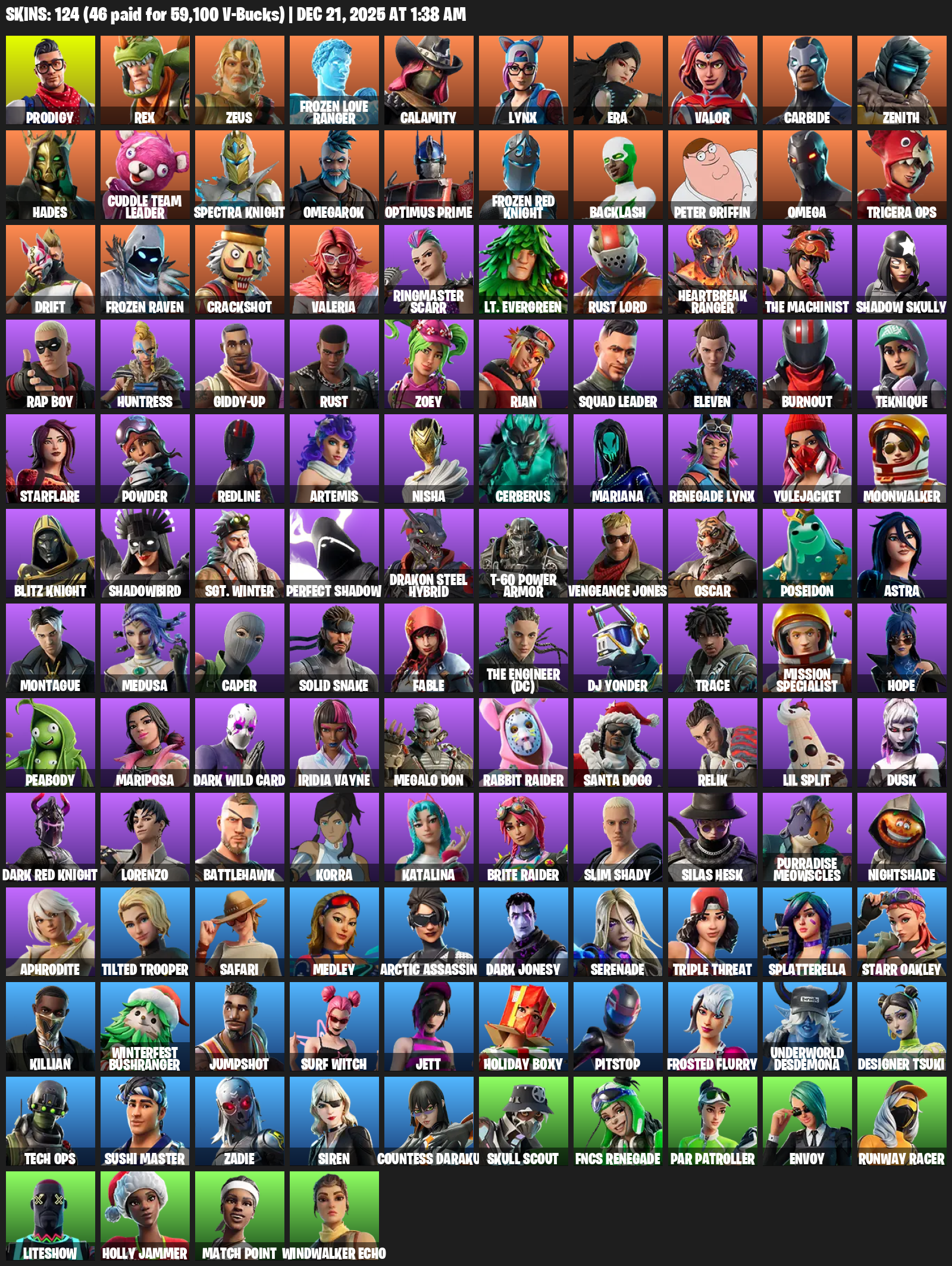 Omega, Prodigy, Rex, Zeus, Frozen Love Ranger, Calamity, Lynx, Era, Valor, Carbide, Zenith, Hades, Cuddle Team Leader, Spectra Knight, Omegarok, Optimus Prime, Backlash, Peter Griffin, Tricera Ops