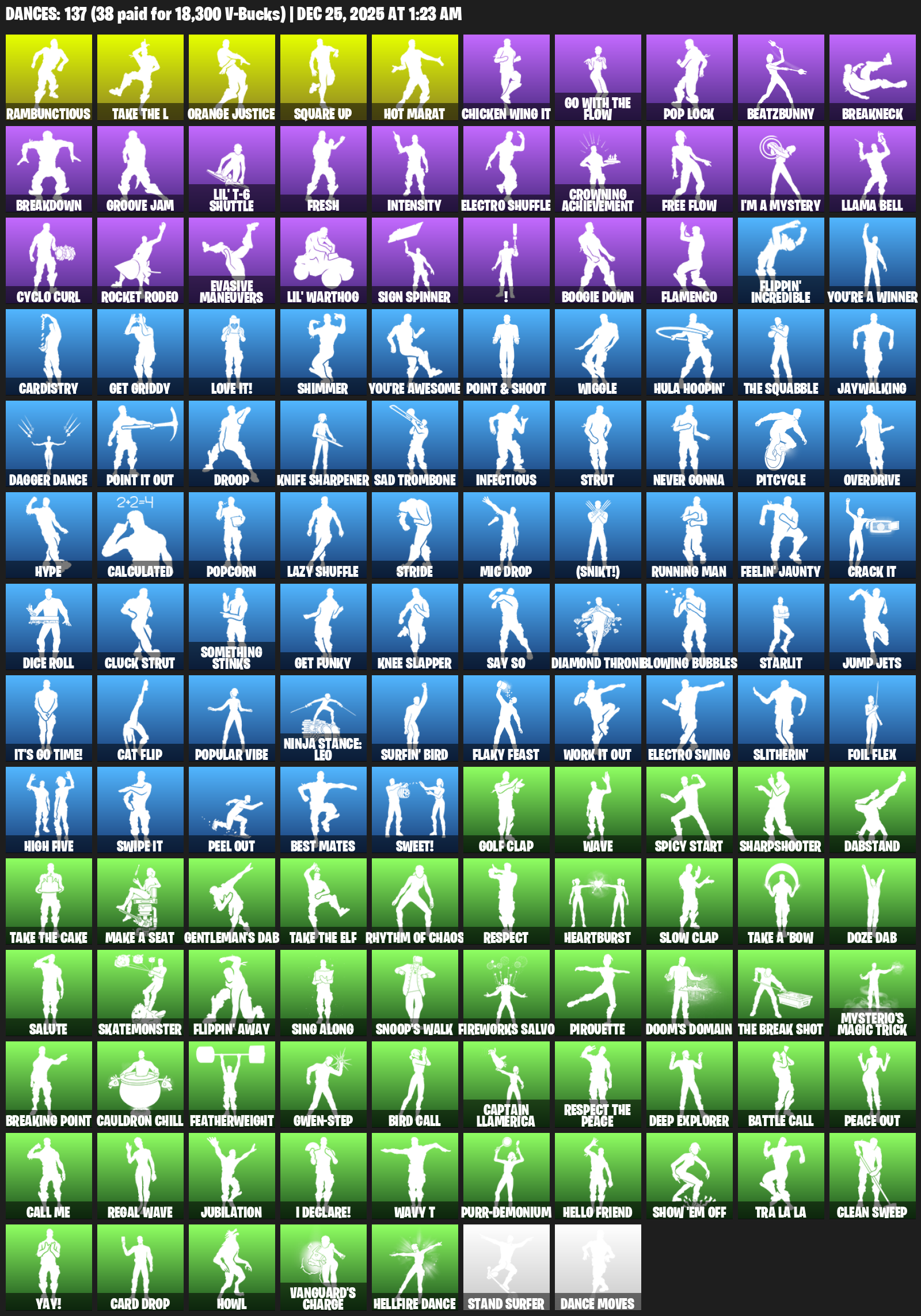 Hot Marat, Rambunctious, Orange Justice, Square Up, Chicken Wing It, Pop Lock, BeatzBunny, Breakneck, Breakdown, Groove Jam, Lil’ T-6 Shuttle, Fresh, Intensity, Electro Shuffle, Crowning Achievement, Free Flow, I’m a Mystery, Llama Bell