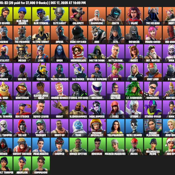 Gear Specialist Maya, Havoc, Rose Team Leader, Warpaint, Sub Commander, Blackheart, Luxe, Fusion, Midas, Sentinel, Deadpool, The Imagined, Snap, Frozen Red Knight, Sorana, Ruin, Hybrid, Menace