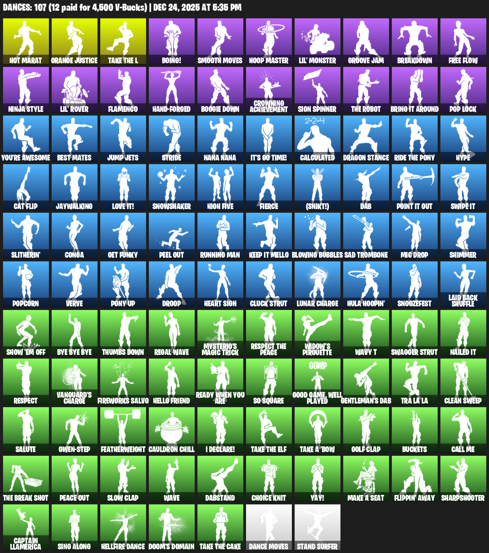 Hot Marat, Orange Justice, Boing!, Smooth Moves, Hoop Master, Lil’ Monster, Groove Jam, Breakdown, Free Flow, Ninja Style, Flamenco, Hand-Forged, Boogie Down, Crowning Achievement, Sign Spinner, Bring it around, Pop Lock