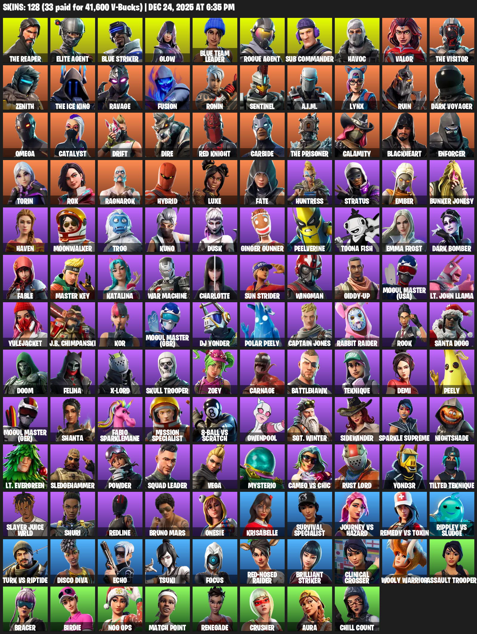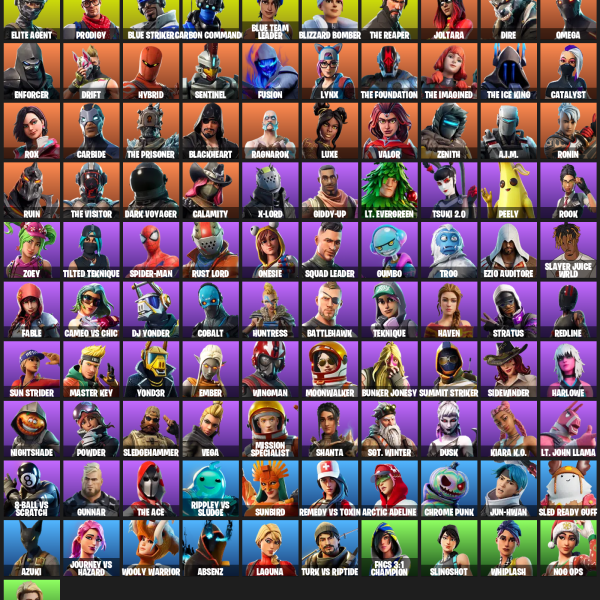 The Reaper, Elite Agent, Omega, Blue Striker, Glow, Sub Commander, Havoc, Valor, Zenith, Ravage, Fusion, Ronin, Sentinel, A.I.M., Lynx, Ruin