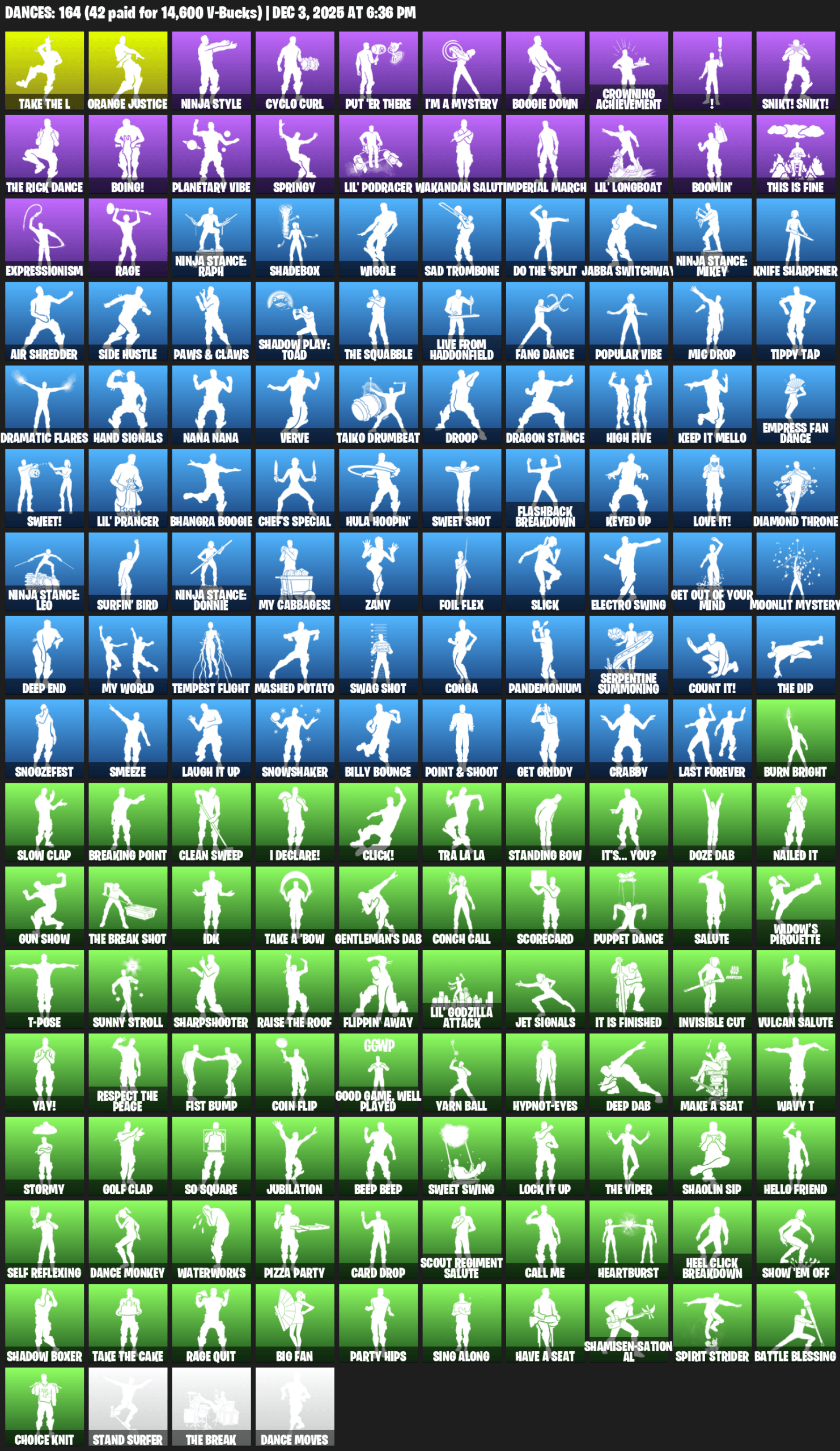 Orange Justice, Ninja Style, Cyclo Curl, Put ‘er There, I’m a Mystery, Boogie Down, Crowning Achievement, !, Snikt! Snikt!, Boing!, Planetary Vibe, Springy, Lil’ Podracer, Wakandan Salute, Imperial March, Boomin’, This is Fine