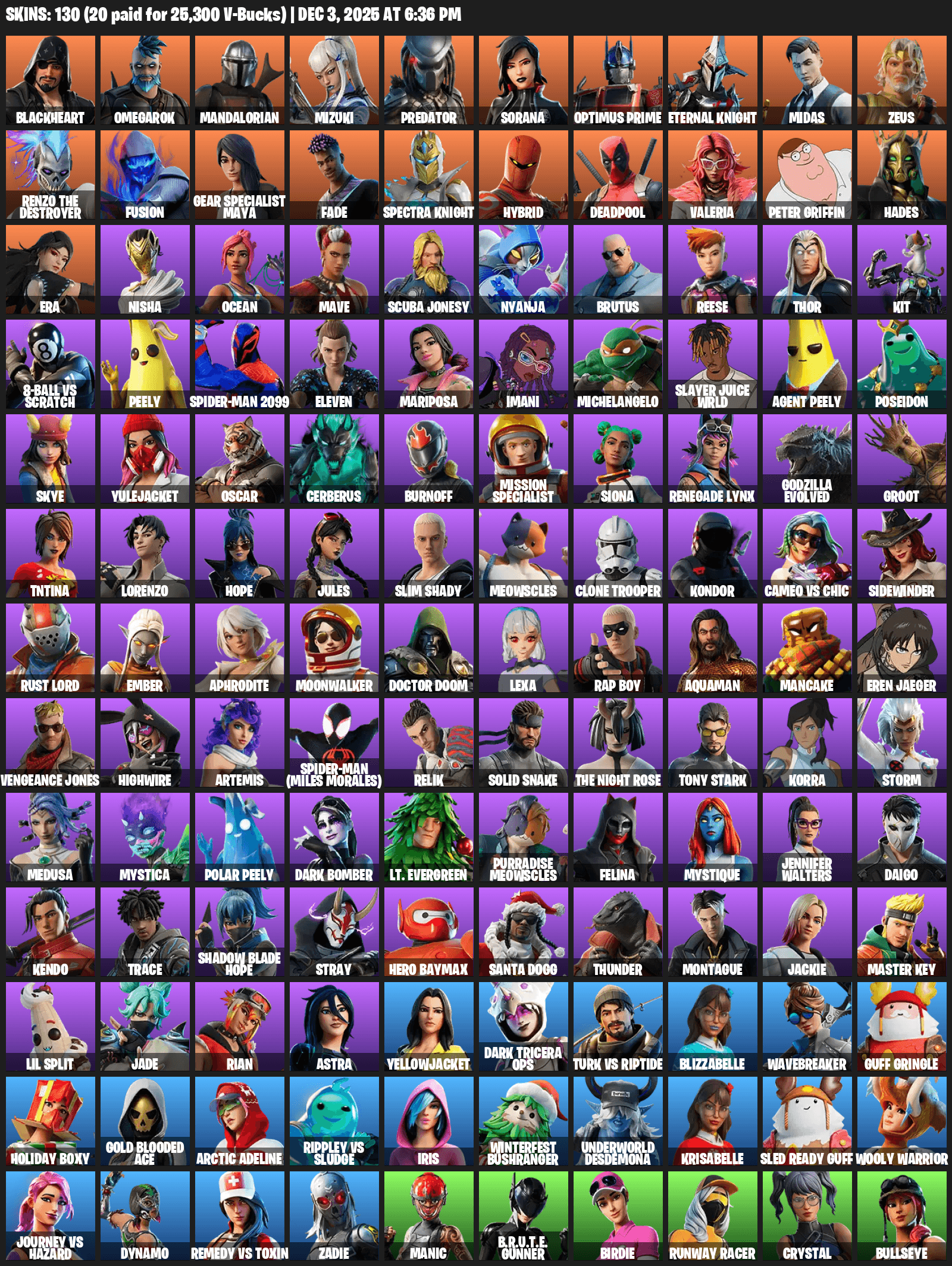 Gear Specialist Maya, Blackheart, Omegarok, Mandalorian, Mizuki, Predator, Sorana, Optimus Prime, Eternal Knight, Midas, Zeus, Renzo the Destroyer, Fusion, Fade, Hybrid, Deadpool, Valeria, Peter Griffin, Hades