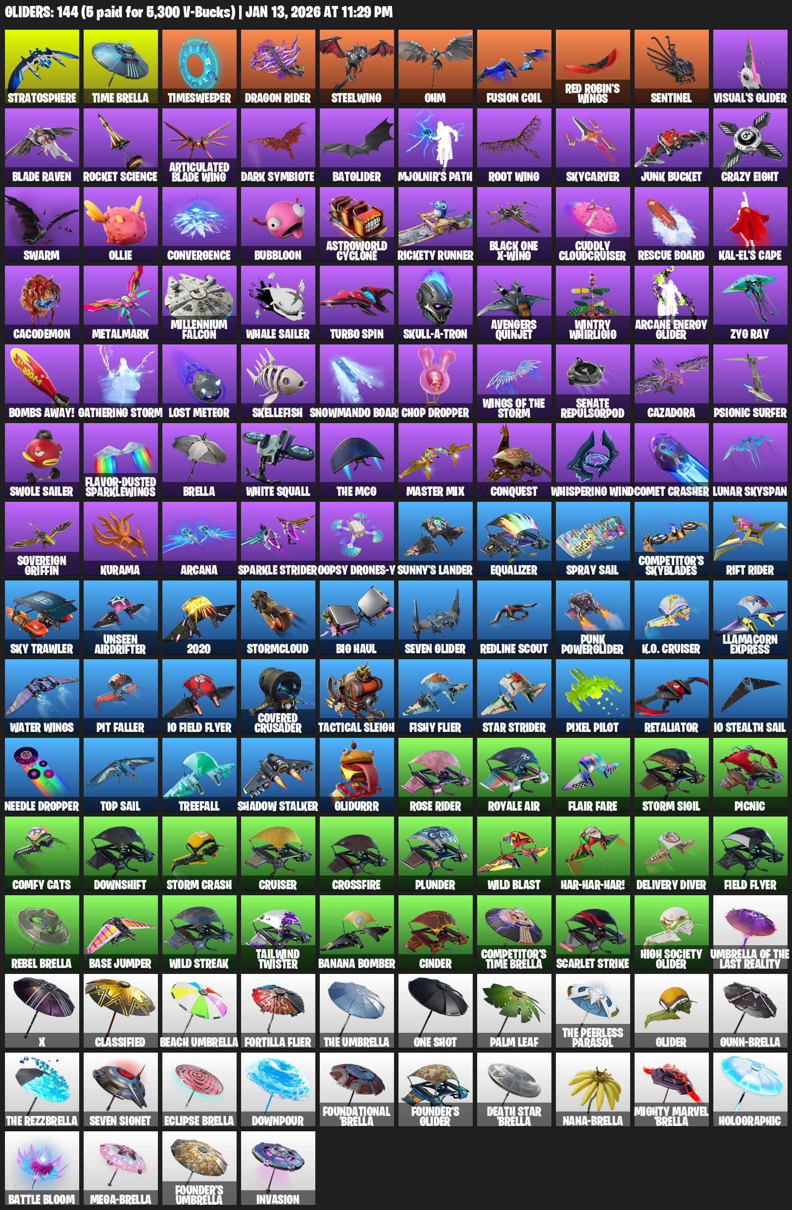 Stratosphere, Time Brella, Timesweeper, Dragon Rider, Steelwing, Ohm, Red Robin’s Wings, Sentinel, Visual’s Glider, Blade Raven, Rocket Science, Batglider, Mjolnir’s Path, Root Wing, Skycarver, Junk Bucket, Crazy Eight