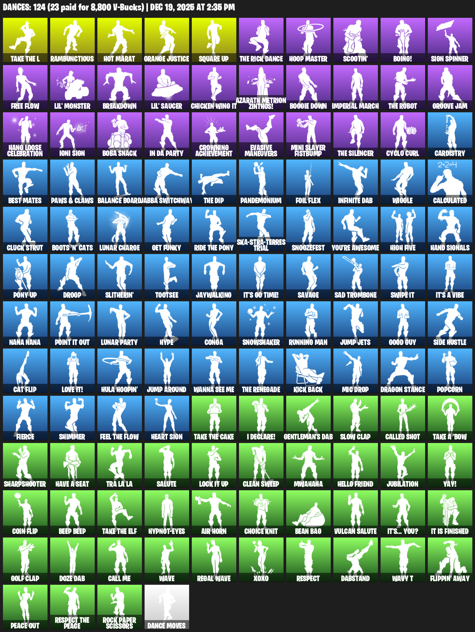 Hot Marat, Rambunctious, Orange Justice, Square Up, Hoop Master, Scootin’, Boing!, Sign Spinner, Free Flow, Lil’ Monster, Breakdown, Chicken Wing It, Azarath Metrion Zinthos!, Boogie Down, Imperial March, Groove Jam