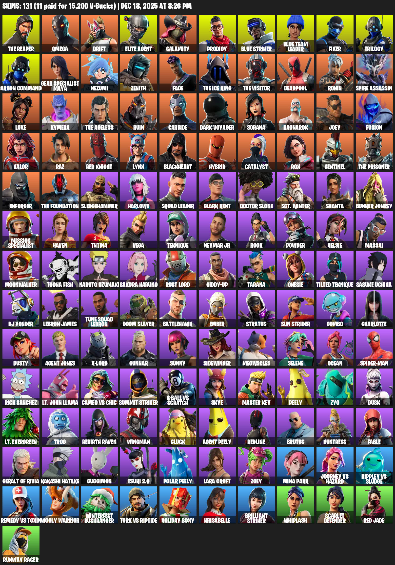 The Reaper, Omega, Elite Agent, Gear Specialist Maya, Lara Croft, Drift, Calamity, Prodigy, Blue Striker, Fixer, Trilogy, Carbon Commando, Nezumi, Zenith, Fade, Deadpool, Ronin