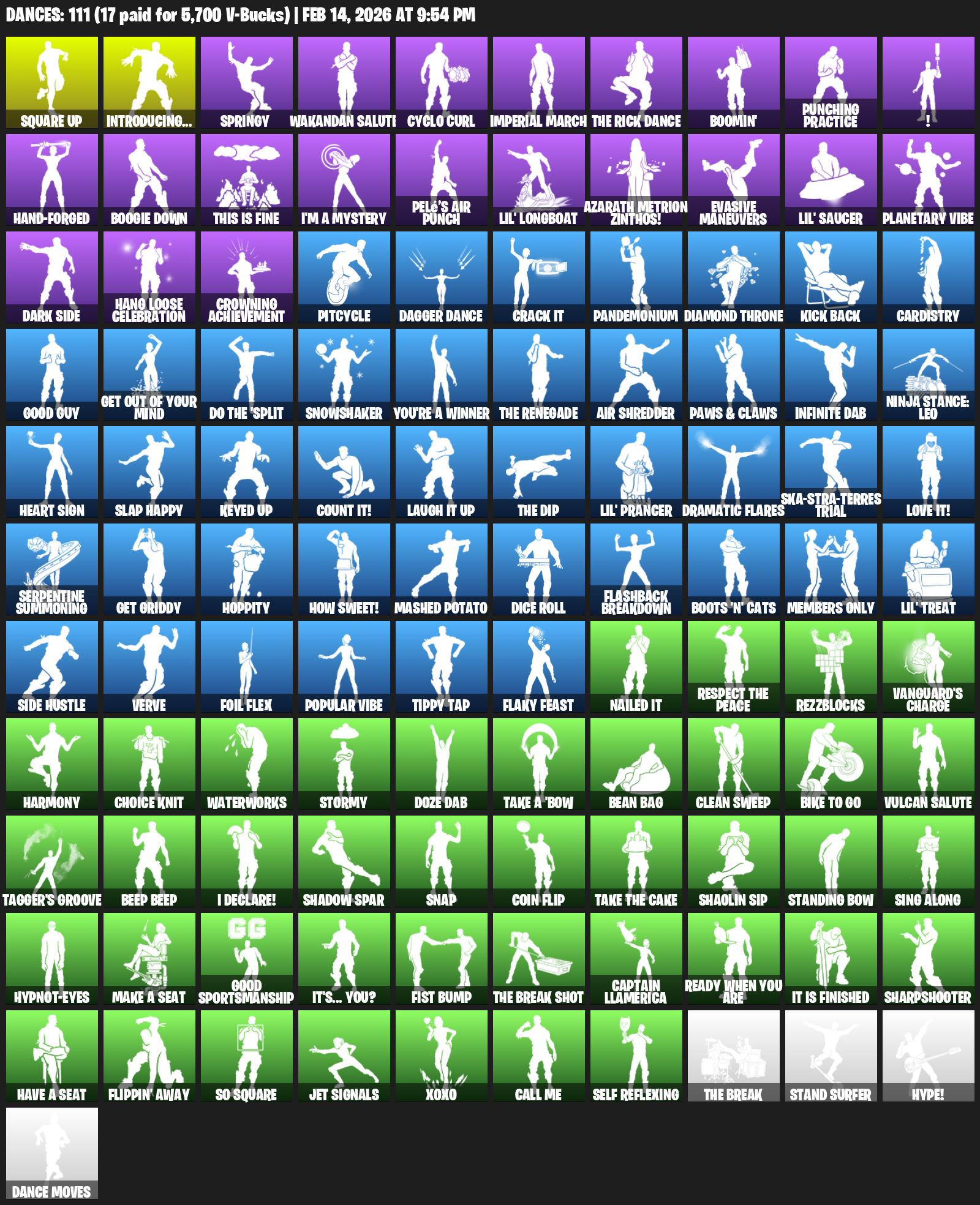 Introducing…, Square Up, Springy , Wakandan Salute, Cyclo Curl, Imperial March, Boomin’, Punching Practice, !, Hand-Forged, Boogie Down, This is Fine, I’m a Mystery, Pelé’s Air Punch, Lil’ Longboat, Azarath Metrion Zinthos!, Evasive Maneuvers, Planetary Vibe