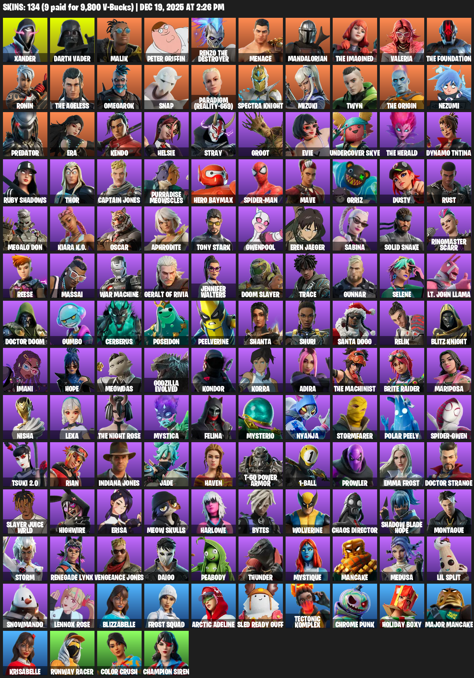 Xander, Darth Vader, Malik, Peter Griffin, Renzo the Destroyer, Menace, Mandalorian, Valeria, Ronin, Omegarok, Snap, Paradigm (Reality-659), Spectra Knight, Mizuki, Twyn, Nezumi