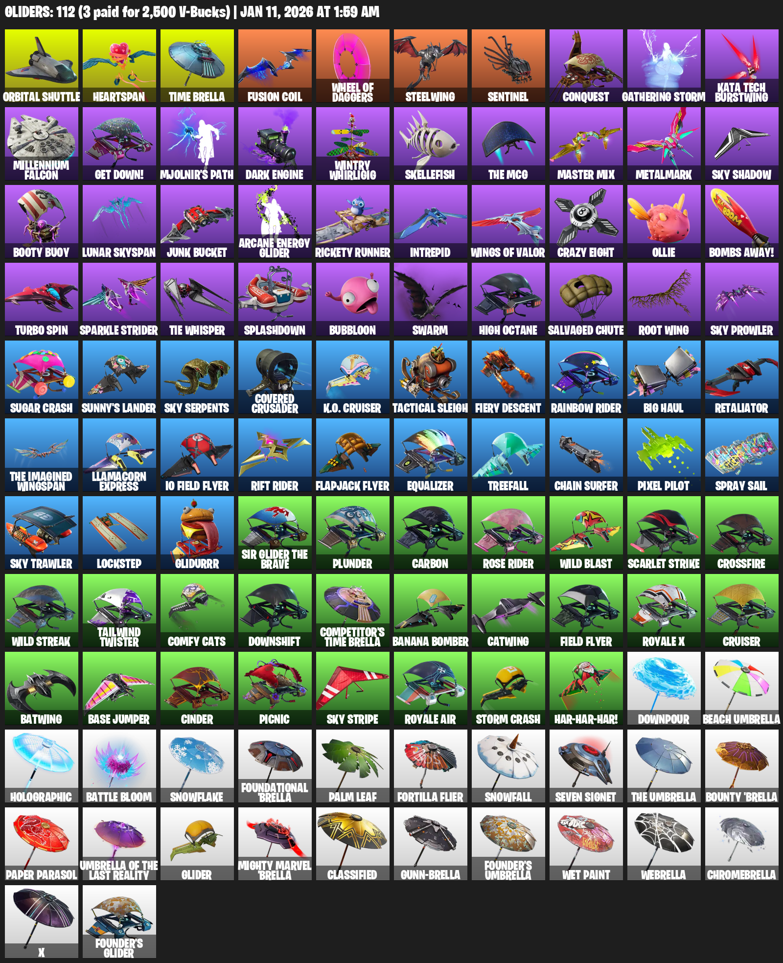 Orbital Shuttle, Heartspan, Time Brella, Fusion Coil, Steelwing, Sentinel, Conquest, Gathering Storm, Kata Tech Burstwing, Millennium Falcon, Get Down!, Mjolnir’s Path, Wintry Whirligig, Skellefish, Metalmark
