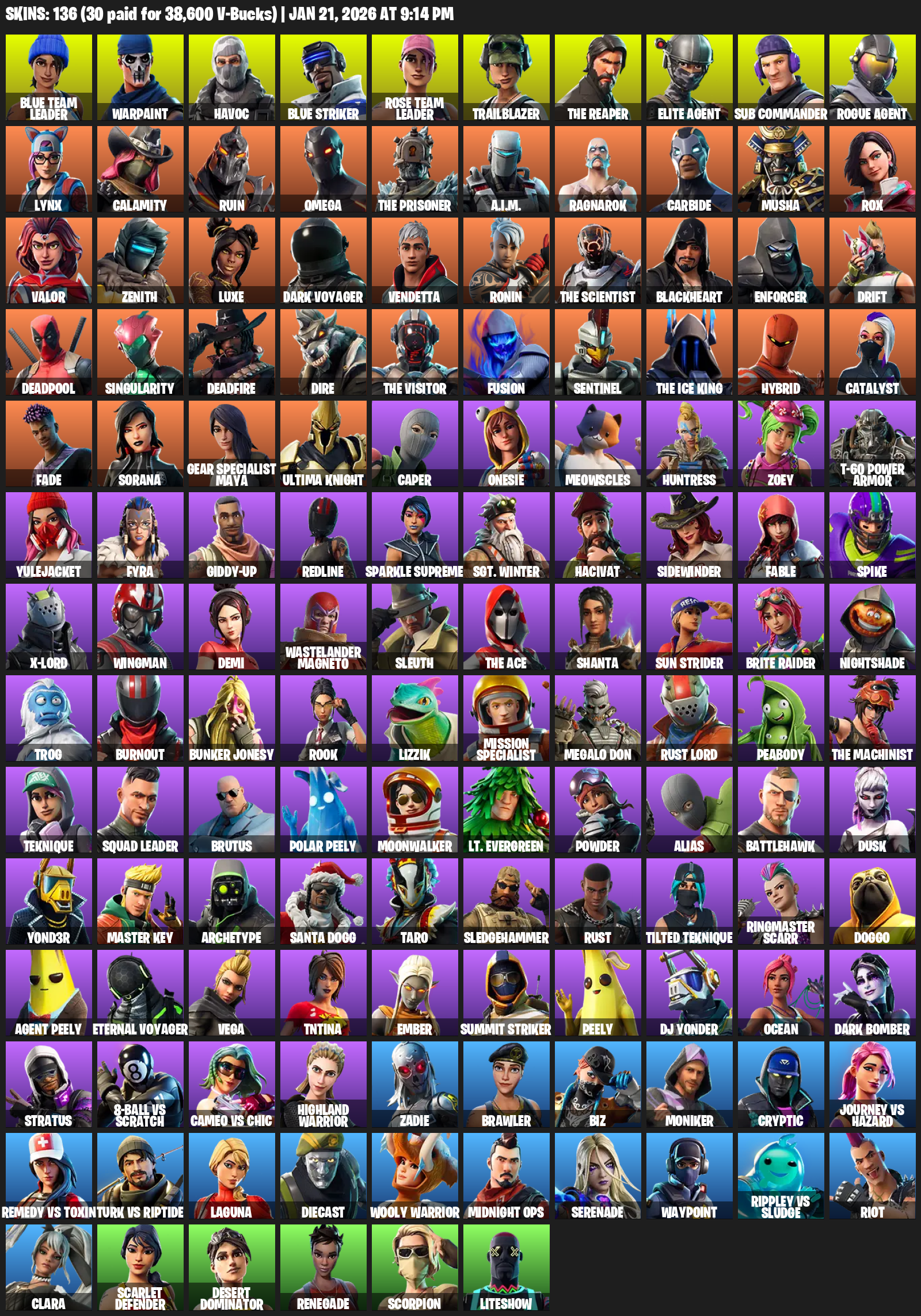 [PC/PSN/XBOX] | 136 skins | Take The L | OG STW | The Reaper | Elite Agent | Omega | Blue Team Leader | Warpaint | Havoc | Blue Striker | #XCH1760