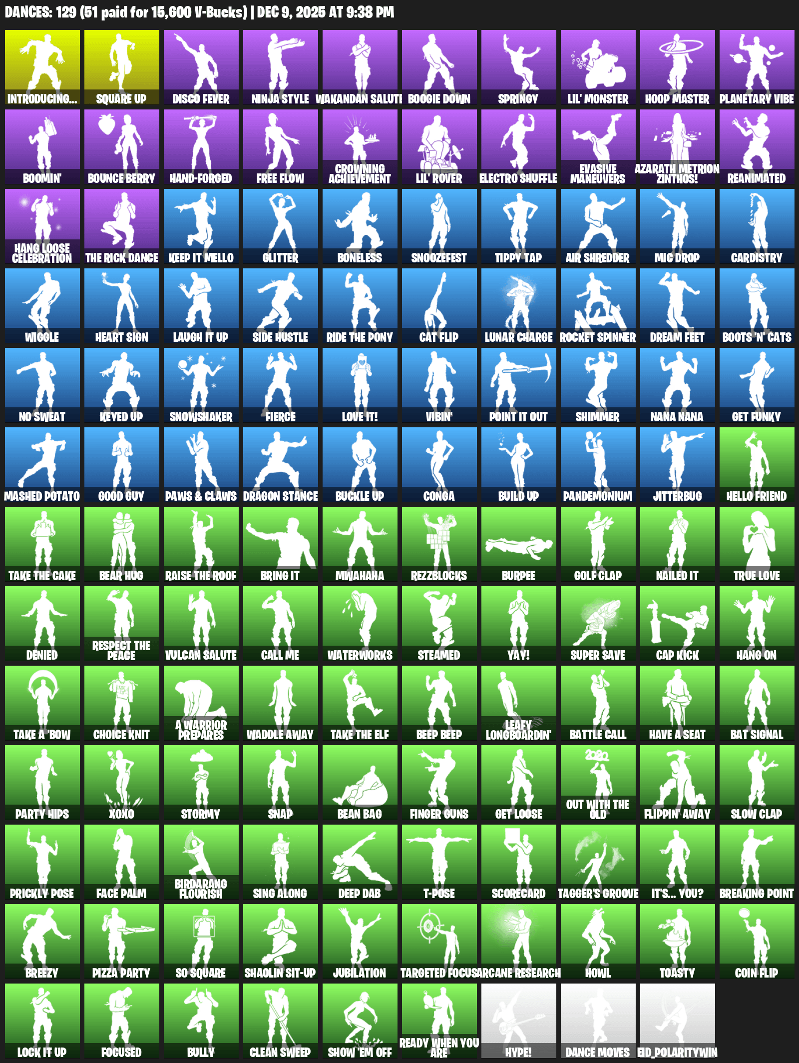 Introducing…, Square Up, Disco Fever, Ninja Style, Wakandan Salute, Boogie Down, Springy, Lil’ Monster, Hoop Master, Planetary Vibe, Boomin’, Bounce Berry, Hand-Forged, Free Flow, Crowning Achievement, Electro Shuffle, Evasive Maneuvers, Azarath Metrion Zinthos!, Reanimated