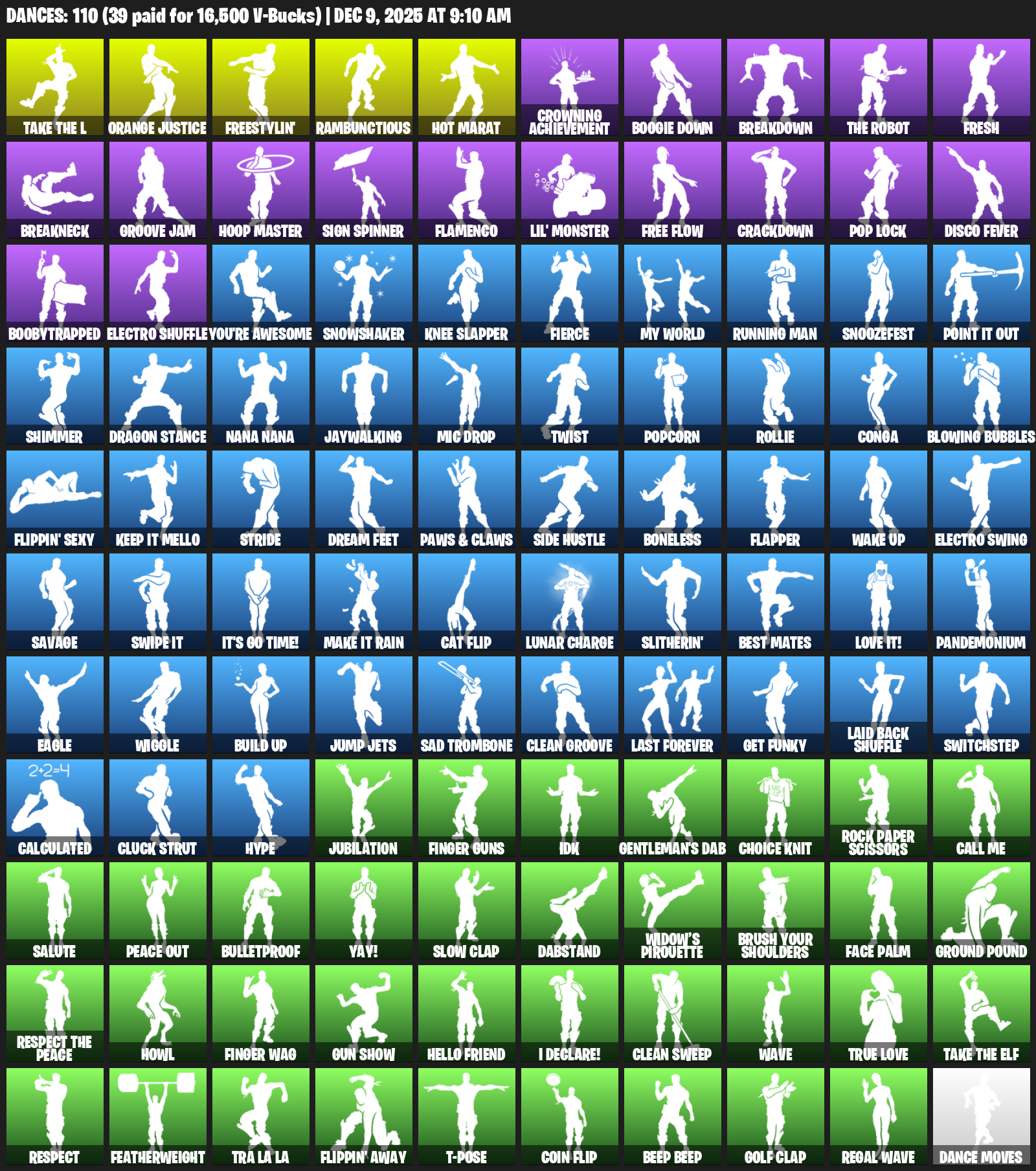 Hot Marat, Orange Justice, Freestylin’, Rambunctious, Crowning Achievement, Boogie Down, Breakdown, Fresh, Breakneck, Groove Jam, Hoop Master, Sign Spinner, Flamenco, Lil’ Monster, Free Flow, Crackdown, Pop Lock, Disco Fever