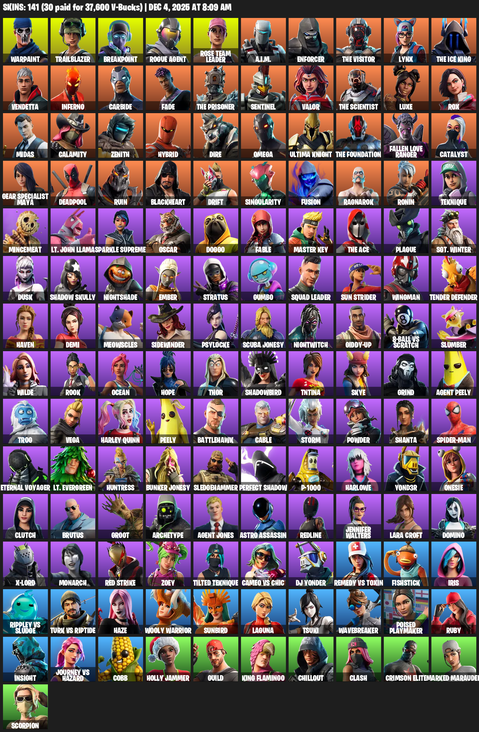 Omega, Gear Specialist Maya, Lara Croft, Warpaint, Trailblazer, Breakpoint, Rogue Agent, Rose Team Leader, A.I.M., Enforcer, The Visitor, Lynx, Vendetta, Inferno, Carbide, Fade, Sentinel, Valor