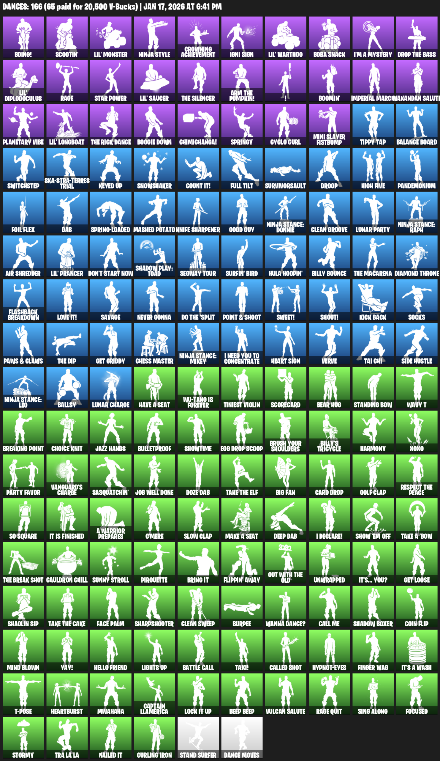 Boing!, Scootin’, Lil’ Monster, Ninja Style, Crowning Achievement, Igni Sign, Boba Snack, I’m a Mystery, Rage, !, Boomin’, Imperial March, Wakandan Salute