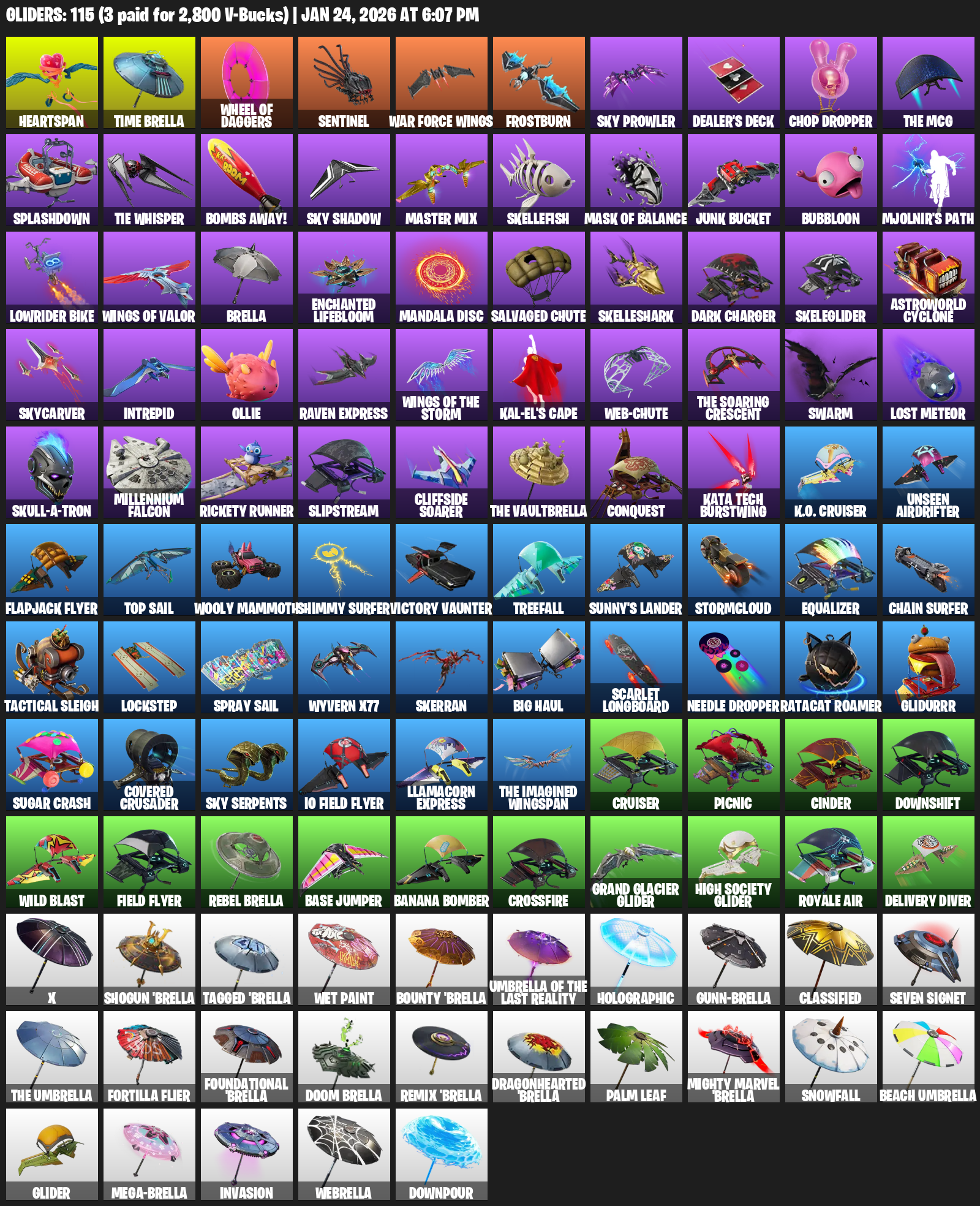 Heartspan, Time Brella, Sentinel, War Force Wings, Frostburn, Sky Prowler, Dealer’s Deck, Chop Dropper, Splashdown, TIE Whisper, Bombs Away!, Master Mix, Skellefish, Mask of Balance, Junk Bucket, Bubbloon, Mjolnir’s Path