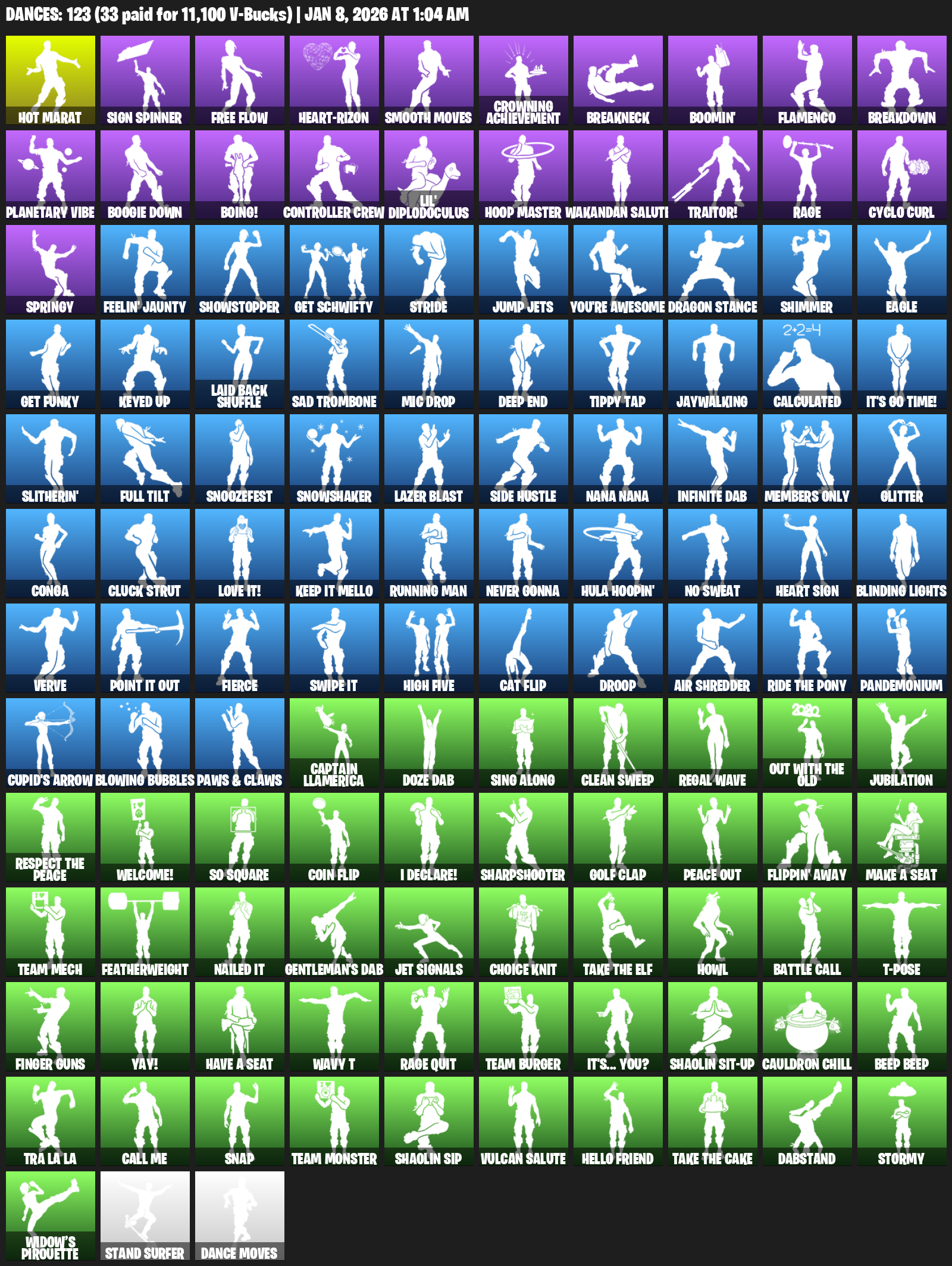 Hot Marat, Sign Spinner, Free Flow, Heart-rizon, Smooth Moves, Crowning Achievement, Breakneck, Boomin’, Flamenco, Breakdown, Planetary Vibe, Boogie Down, Boing!, Controller Crew, Lil’ Diplodoculus, Hoop Master, Wakandan Salute, Traitor!, Rage, Cyclo Curl
