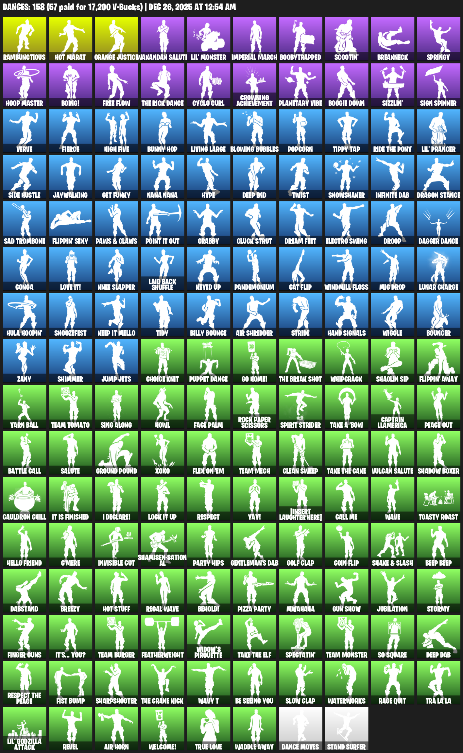 Hot Marat, Rambunctious, Orange Justice, Wakandan Salute, Lil’ Monster, Imperial March, Boobytrapped, Scootin’, Breakneck, Springy, Hoop Master, Boing!, Free Flow, Cyclo Curl, Crowning Achievement, Planetary Vibe, Boogie Down, Sizzlin’, Sign Spinner