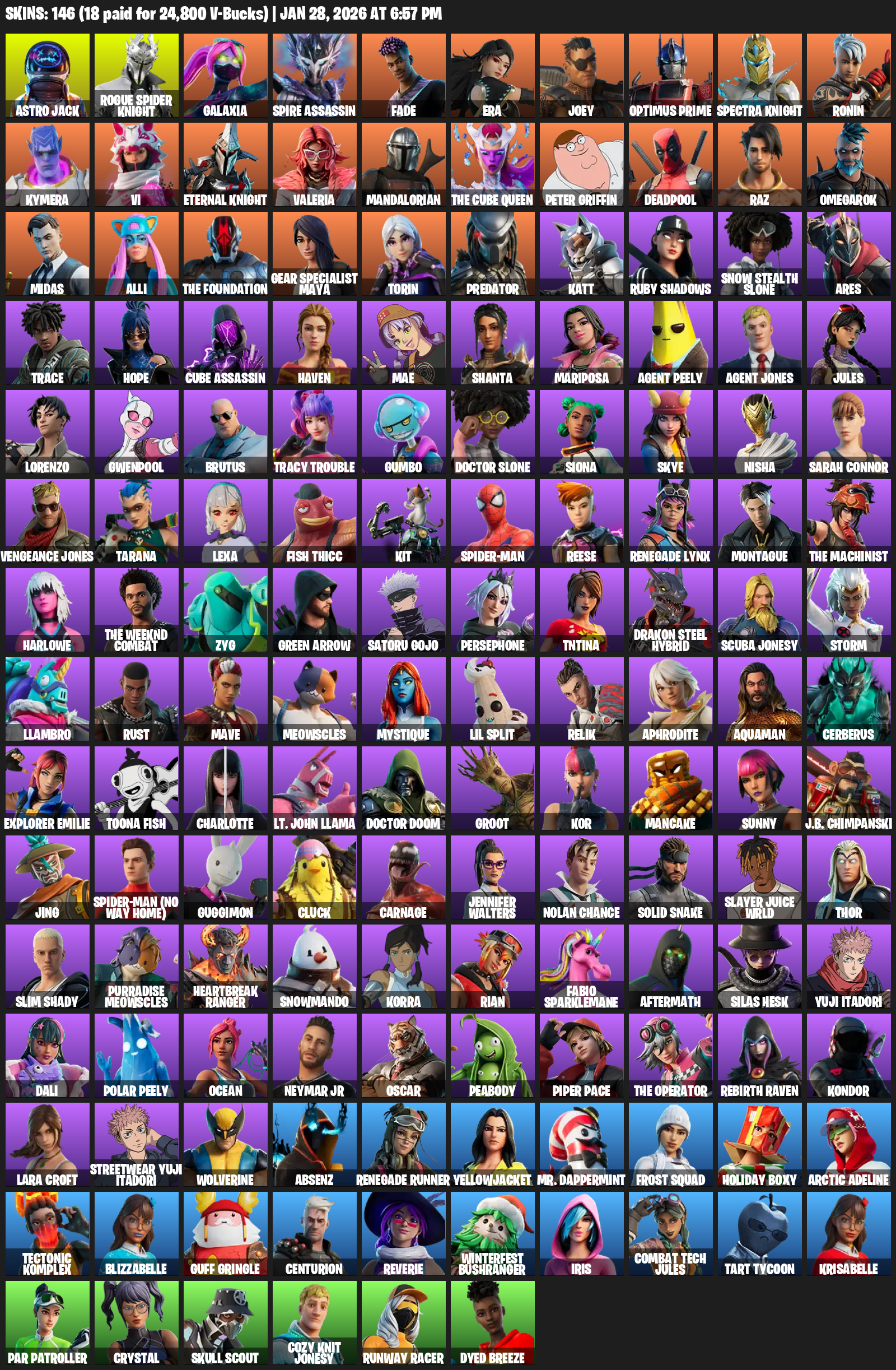 [PC/PSN/XBOX] | 146 skins | Leviathan Axe | Lara Croft | Astro Jack | Rogue Spider Knight | Galaxia | Spire Assassin | Fade | Era | Joey | #CHU4438