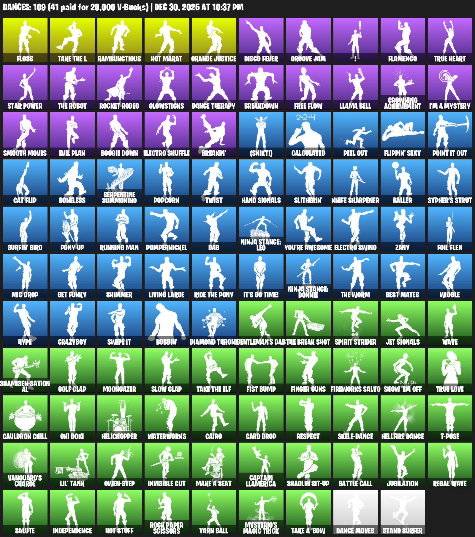 Floss, Hot Marat, Rambunctious, Orange Justice, Disco Fever, Groove Jam, !, Flamenco, True Heart, Star Power, Rocket Rodeo, Glowsticks, Dance Therapy, Breakdown, Free Flow, Llama Bell, Crowning Achievement, I’m a Mystery