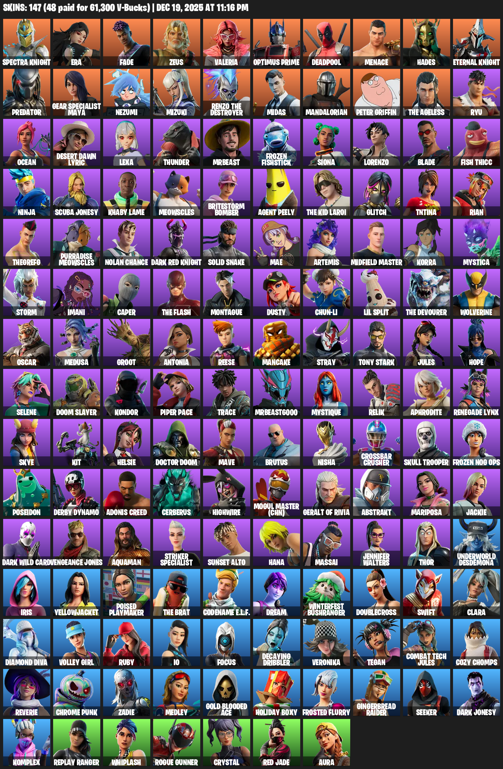 Gear Specialist Maya, Spectra Knight, Era, Fade, Zeus, Valeria, Optimus Prime, Deadpool, Menace, Hades, Predator, Nezumi, Mizuki, Renzo the Destroyer, Midas, Mandalorian, Peter Griffin, Ryu
