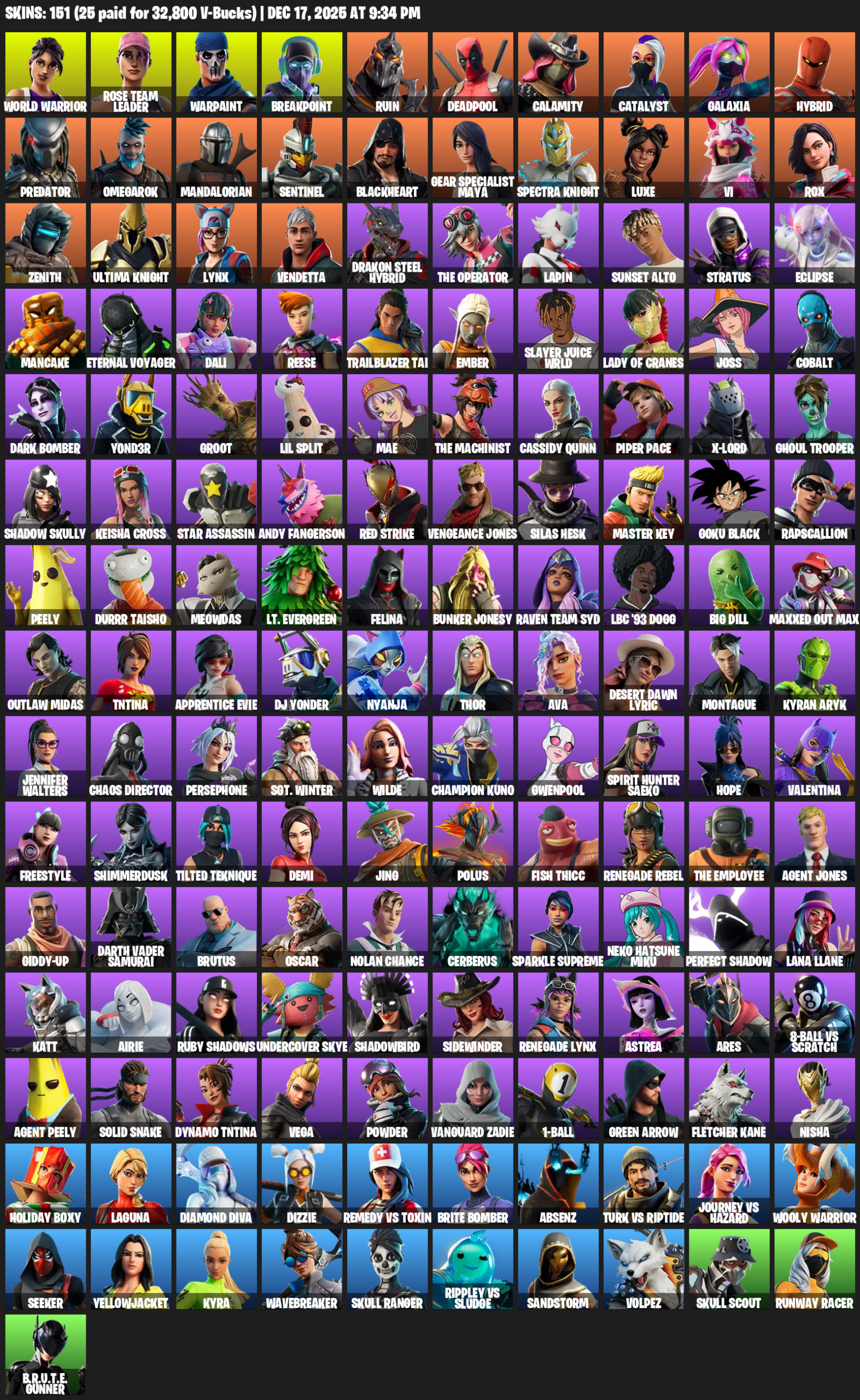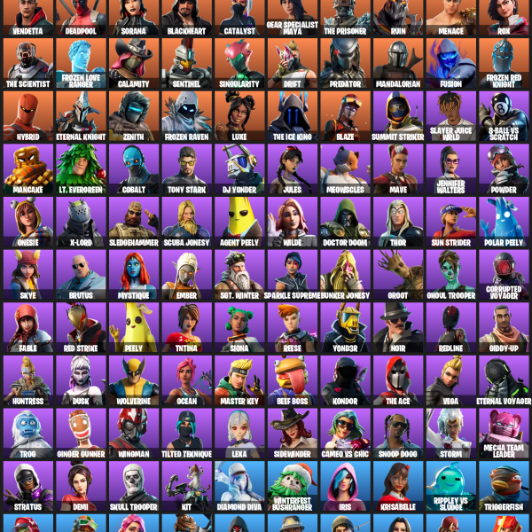 Gear Specialist Maya, World Warrior, Rose Team Leader, Warpaint, Breakpoint, Ruin, Deadpool, Calamity, Catalyst, Galaxia, Hybrid, Predator, Omegarok, Mandalorian, Sentinel, Blackheart, Spectra Knight, Luxe, Vi, Rox
