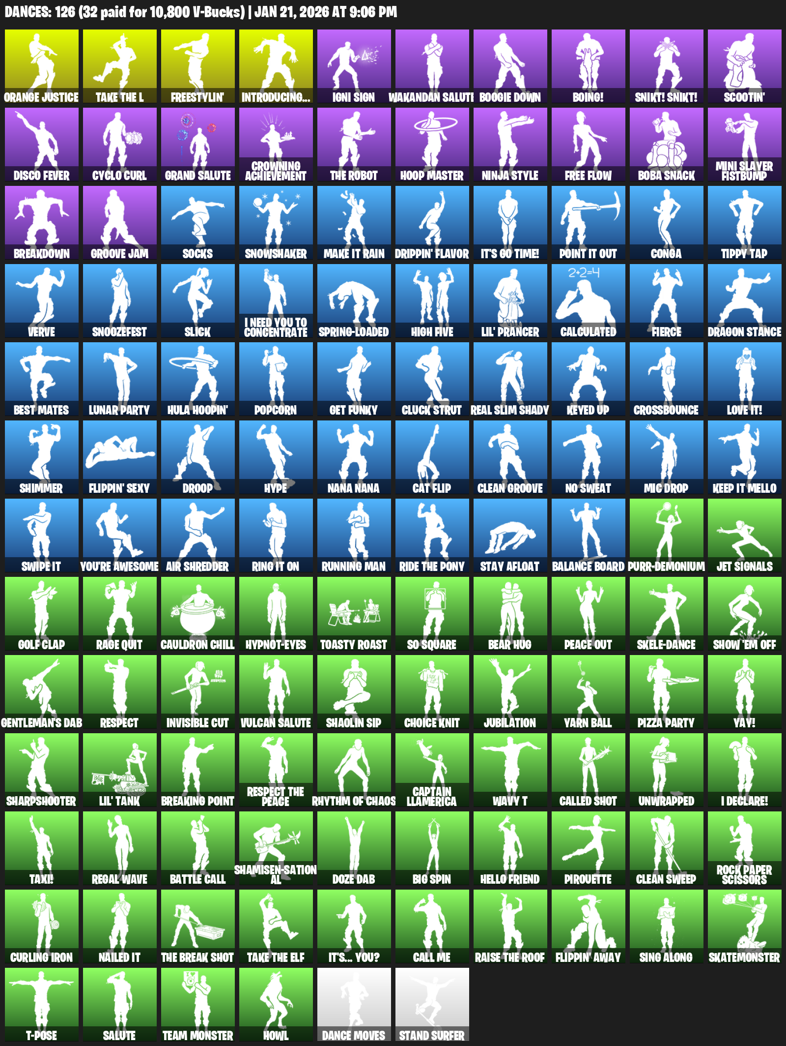 Introducing…, Freestylin’, Igni Sign, Wakandan Salute, Boogie Down, Boing!, Snikt! Snikt!, Scootin’, Cyclo Curl, Crowning Achievement, Hoop Master, Ninja Style, Free Flow, Boba Snack, Mini Slayer Fistbump